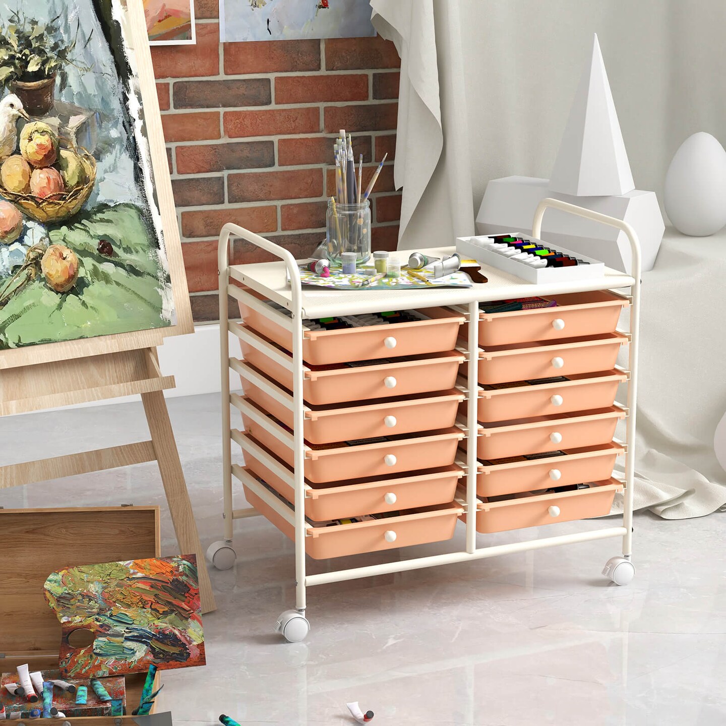 Costway 12 Drawers Rolling Cart Storage Scrapbook Paper Studio Organizer Bins Macaron/White/Light Pink/Purple/Pink/Clear/Gray/Rainbow/Multicolor/Hot Pink/Black