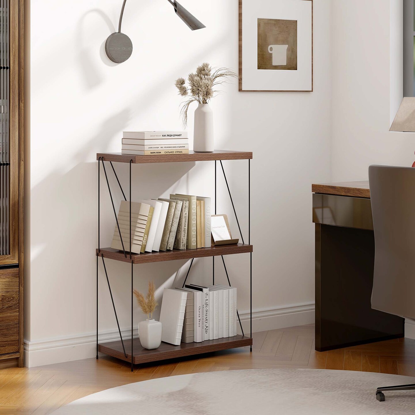 Costway 1/2 PCS 3-Tier Multipurpose Display Rack Freestanding Bookcase with Metal Frame Walnut