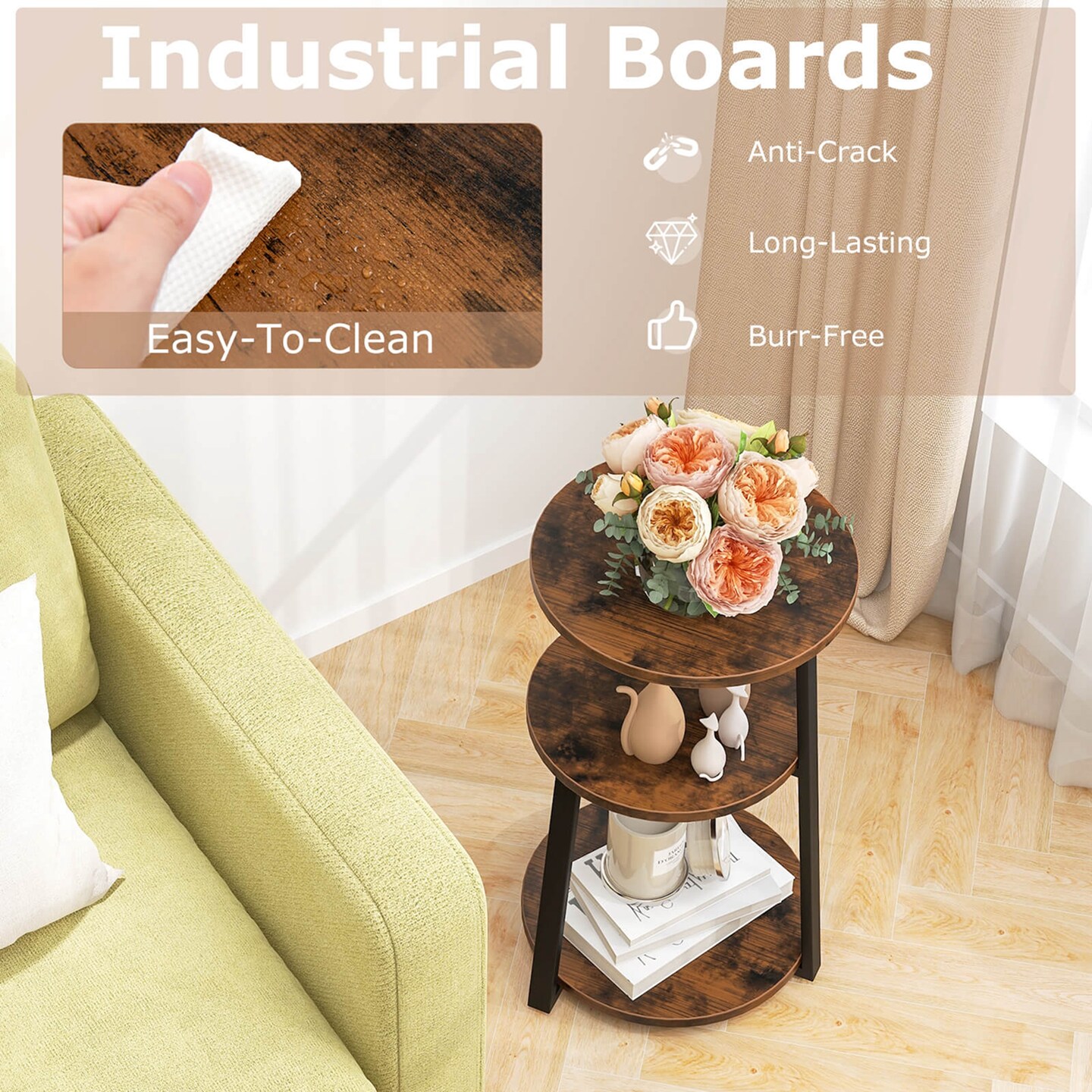 Costway 1/2 PCS 3-Tier Round Side Table with Metal Frame & Adjustable Foot Pads Nightstand