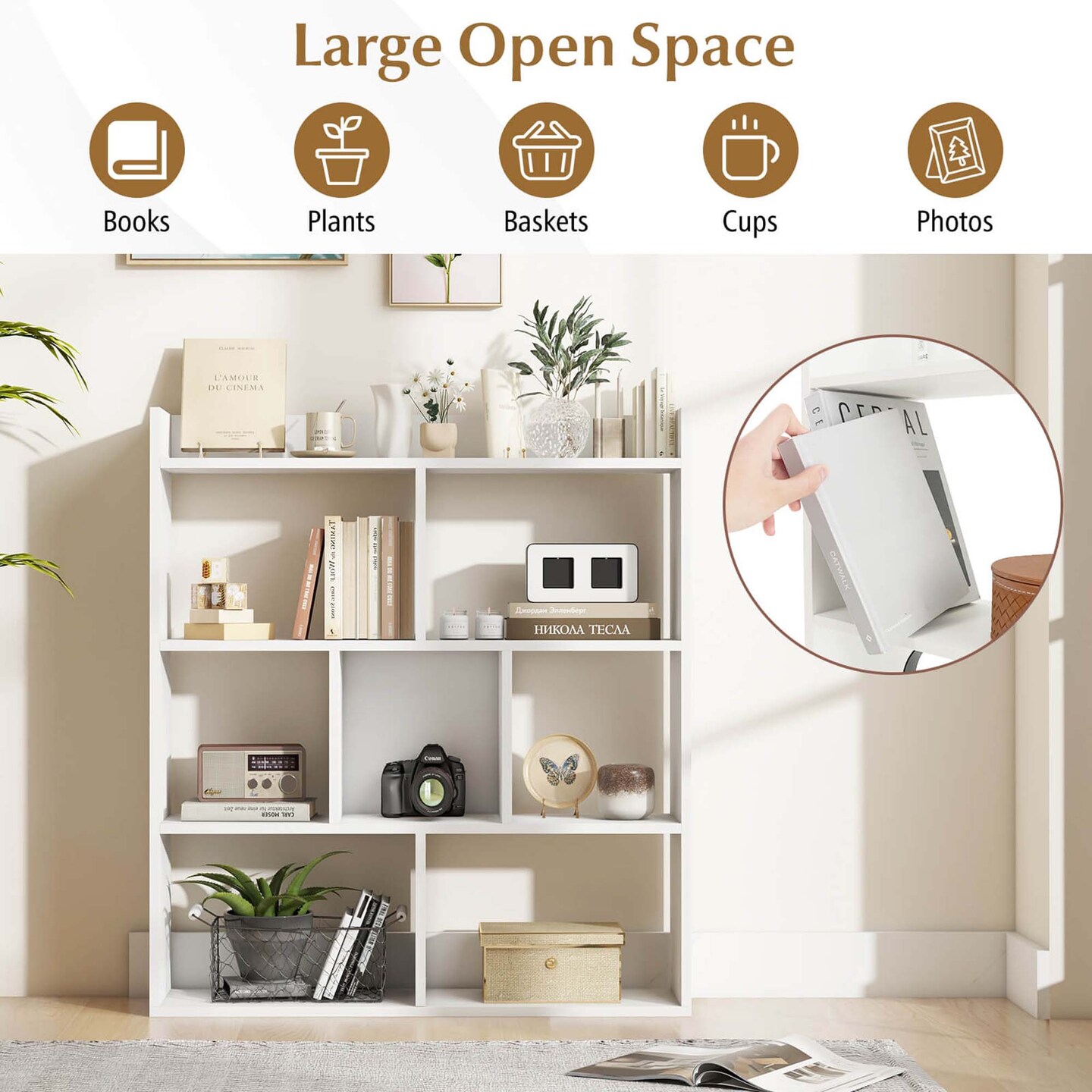 Costway 1/2 PCS 7-cube Bookcase Open Storage Shelf with Anti-tipping Kits for Living Room White/Black/Natural