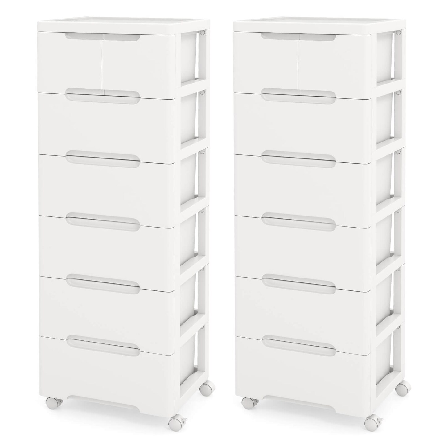 Costway 1/2 PCS 7-Drawer Plastic Rolling Storage Cart with 4 Universal Wheels Dresser Cabinet