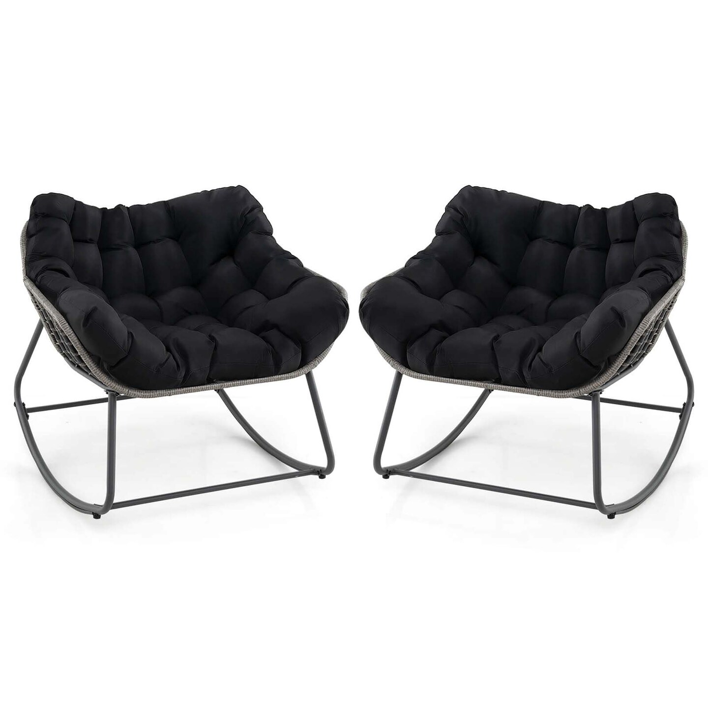 Costway 1/2 PCS Outdoor Rocking Chair Oversized Patio PE Wicker Egg Chair Rattan Lounge Chair Black