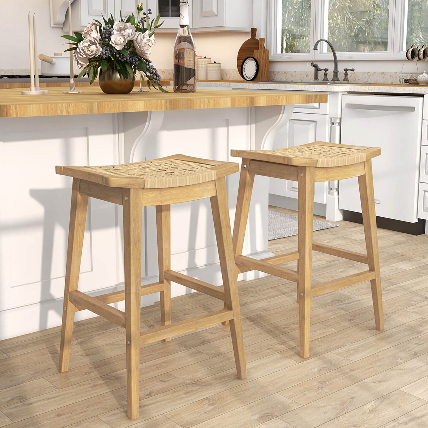 Costway 1/2/4 PCS 29" Teak Wood Bar Stool with Footrest & Saddle Seat Boho Bar Height Stool