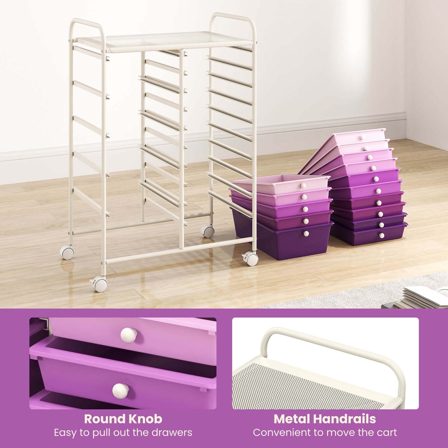 Costway 15 Drawer Rolling Storage Cart Tools Scrapbook Paper Office School Organizer Multicolored/Pink/Grey/Hot Pink/White/Black/Clear/Multicolor/Colorful/Mixed Pink
