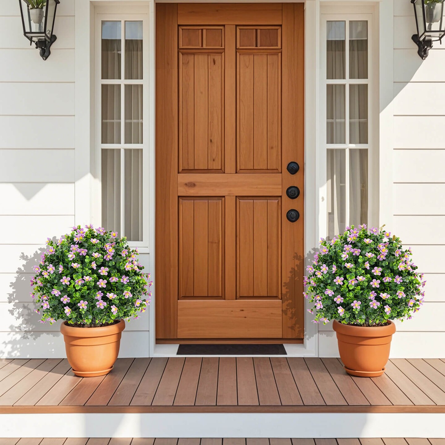 Costway 2 Pack Artificial Boxwood Topiary Ball Tree Faux Shrub Bushes with Flowers White/Purple