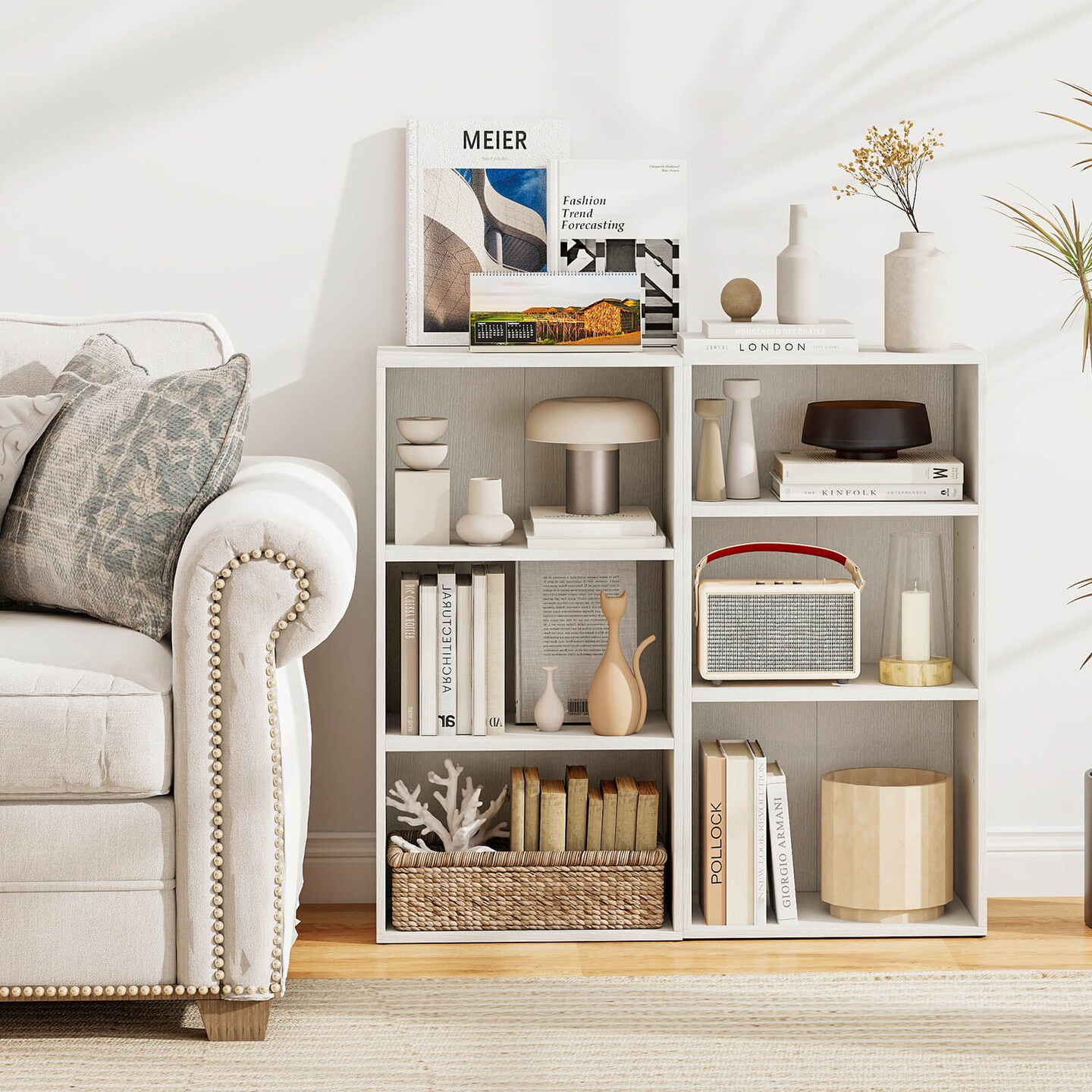 Costway 2 PCS 3 Tier Open Shelf Bookcase Multi-functional Storage Display Cabinet White