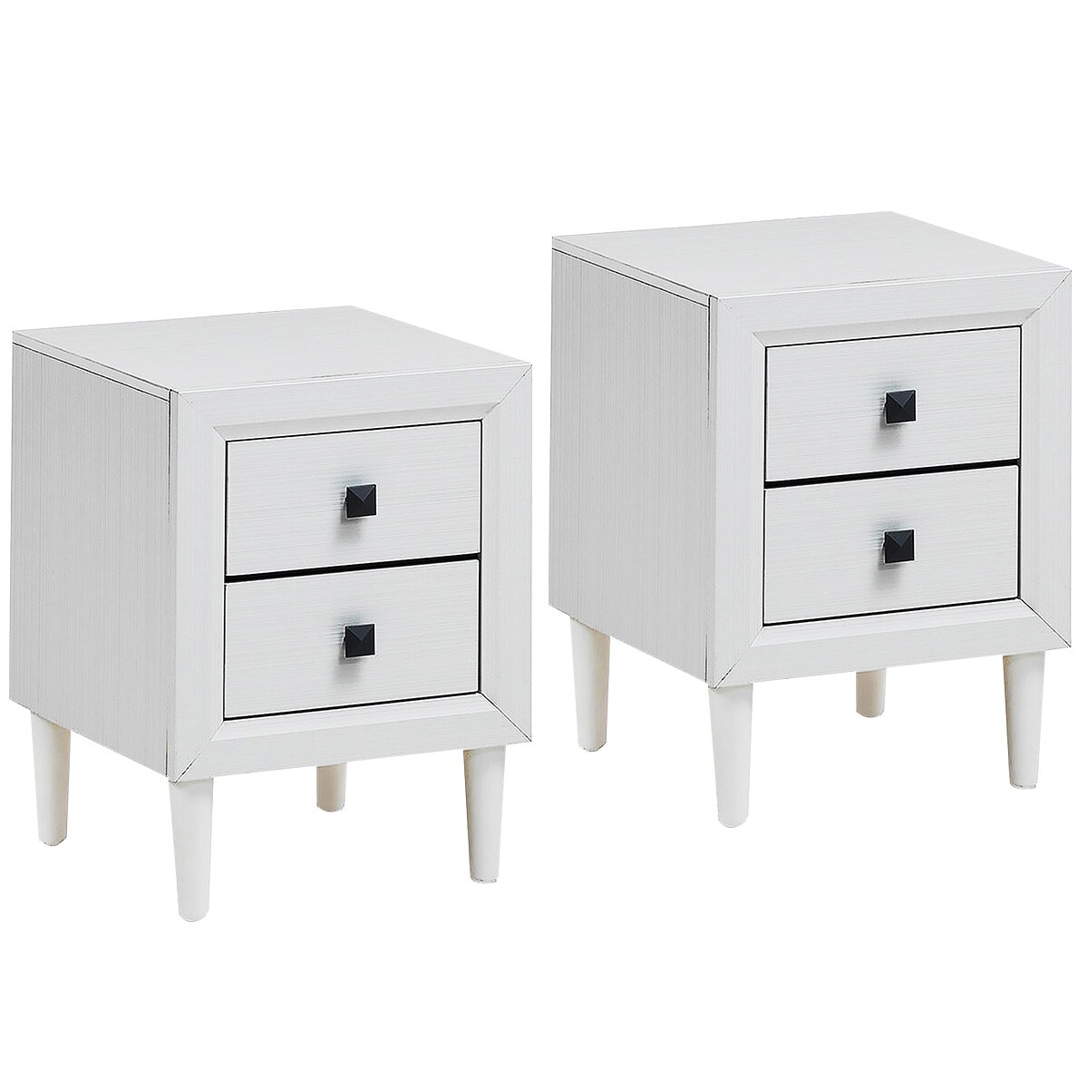Costway 2 PCs Nightstand End Bedside Coffee Table Wooden Leg Storage Drawers White