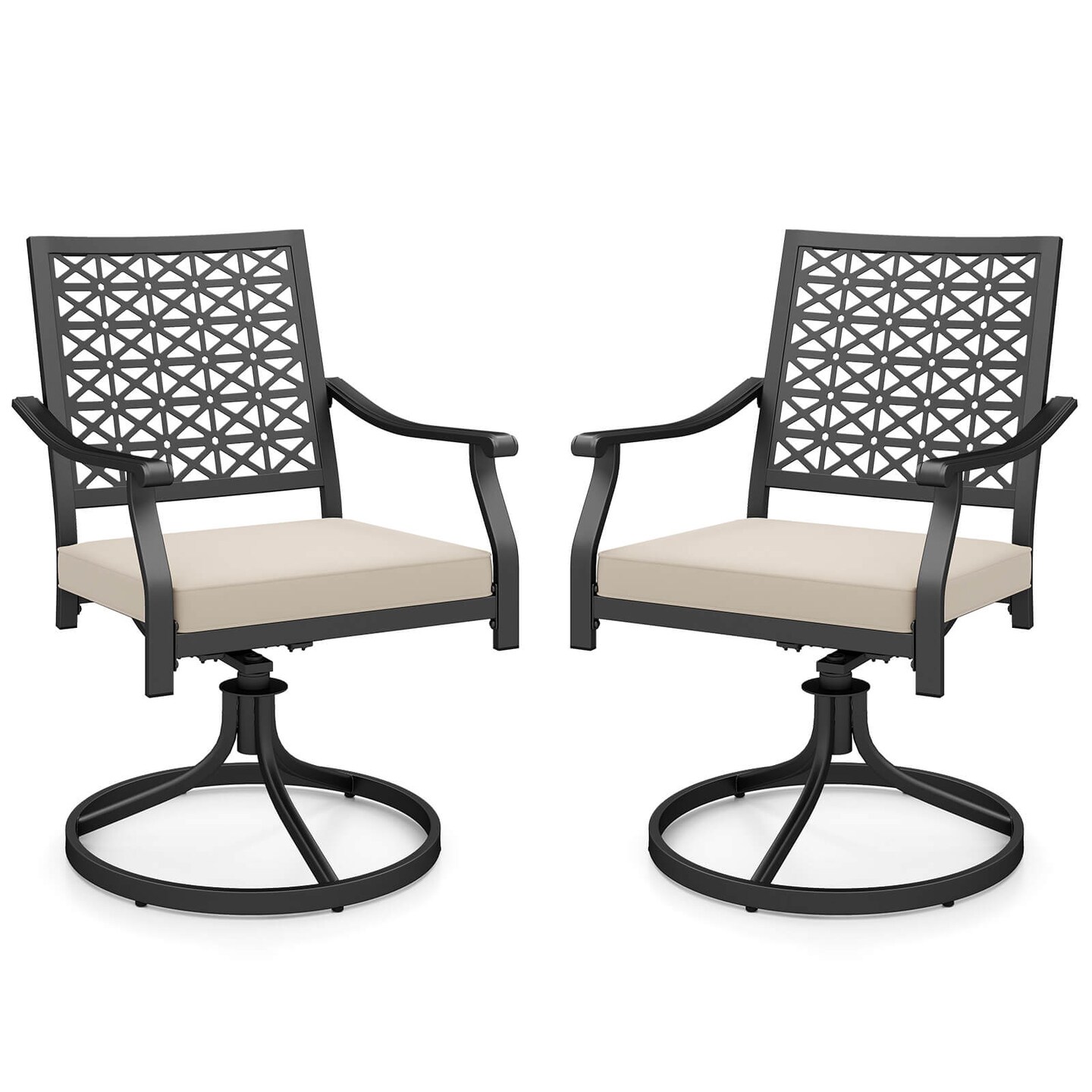 Costway 2 PCS Outdoor Swivel Chairs Patio Dining Chairs with Padded Cushions High Back Beige/Navy