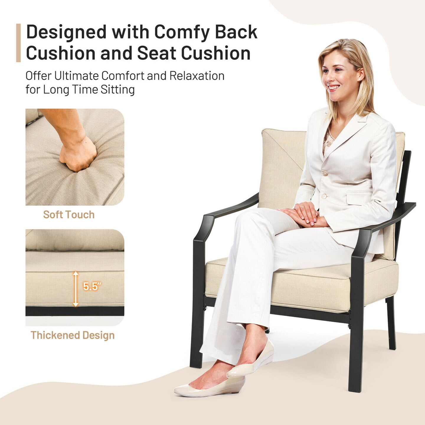 Costway 2 PCS Patio Dining Chairs Set with Padded Cushions Armrest Steel Frame