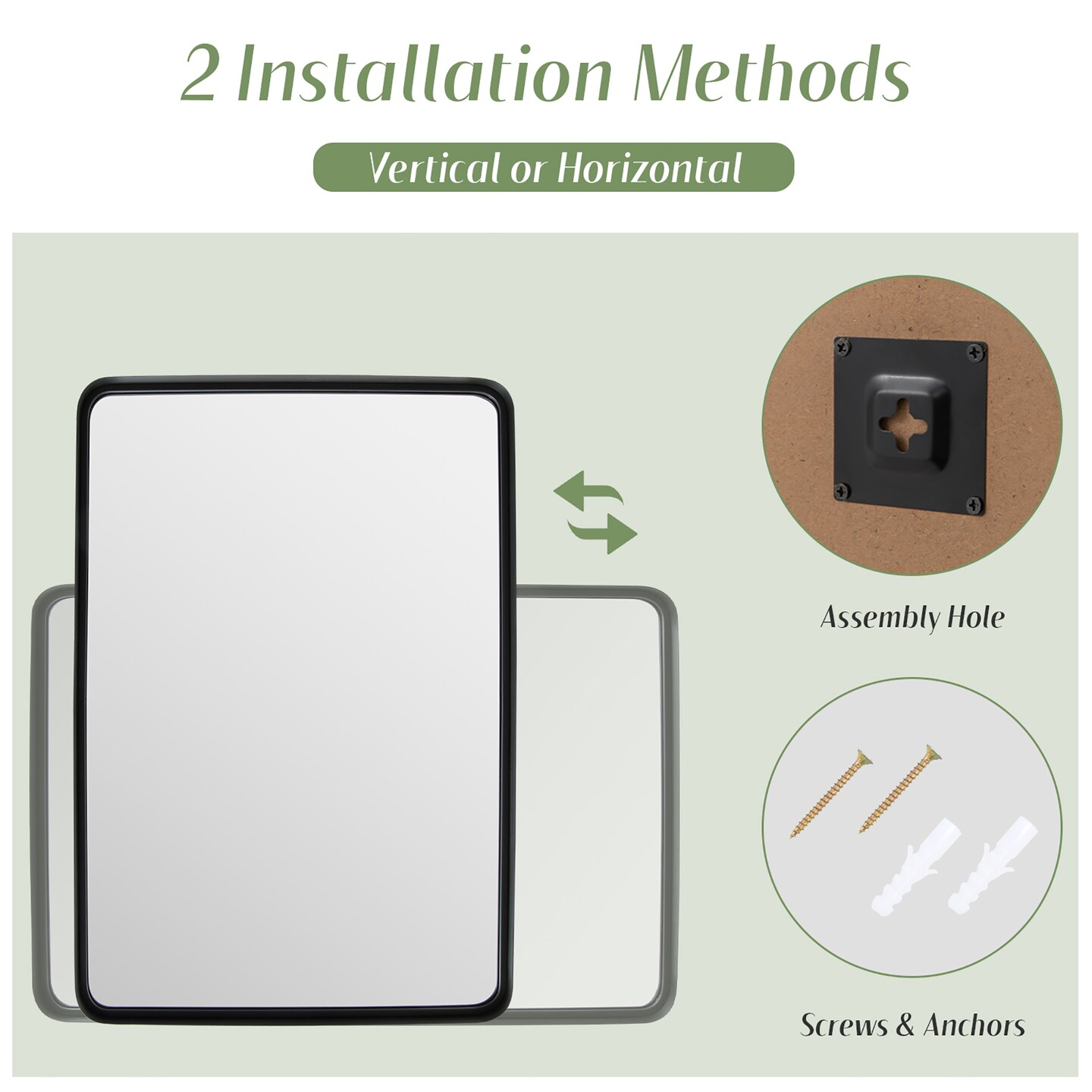 Costway 24''X16''\36''X24''\30''X22''Wall Mount Bathroom Mirror Rectangular Vanity Mirror Vertical Horizontal