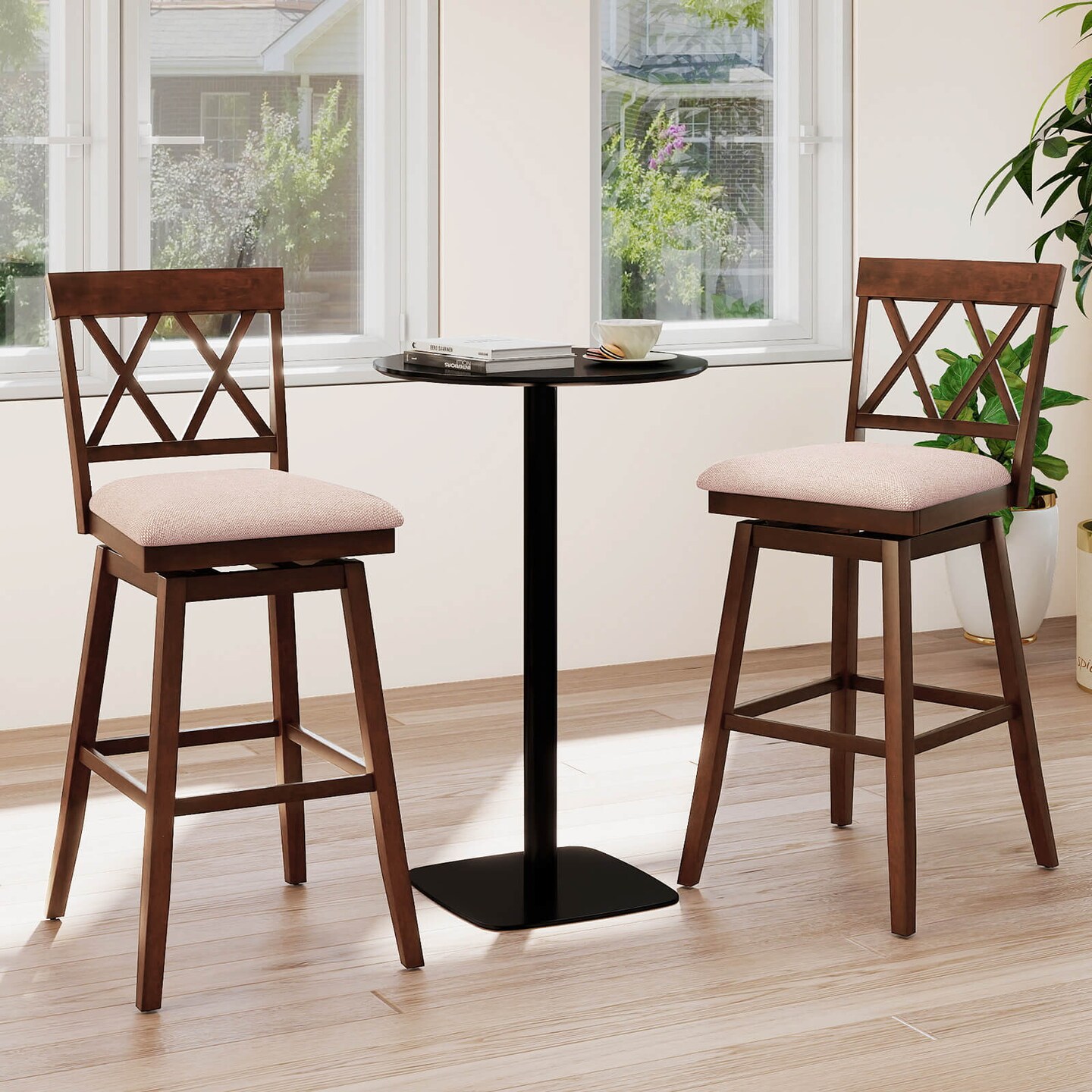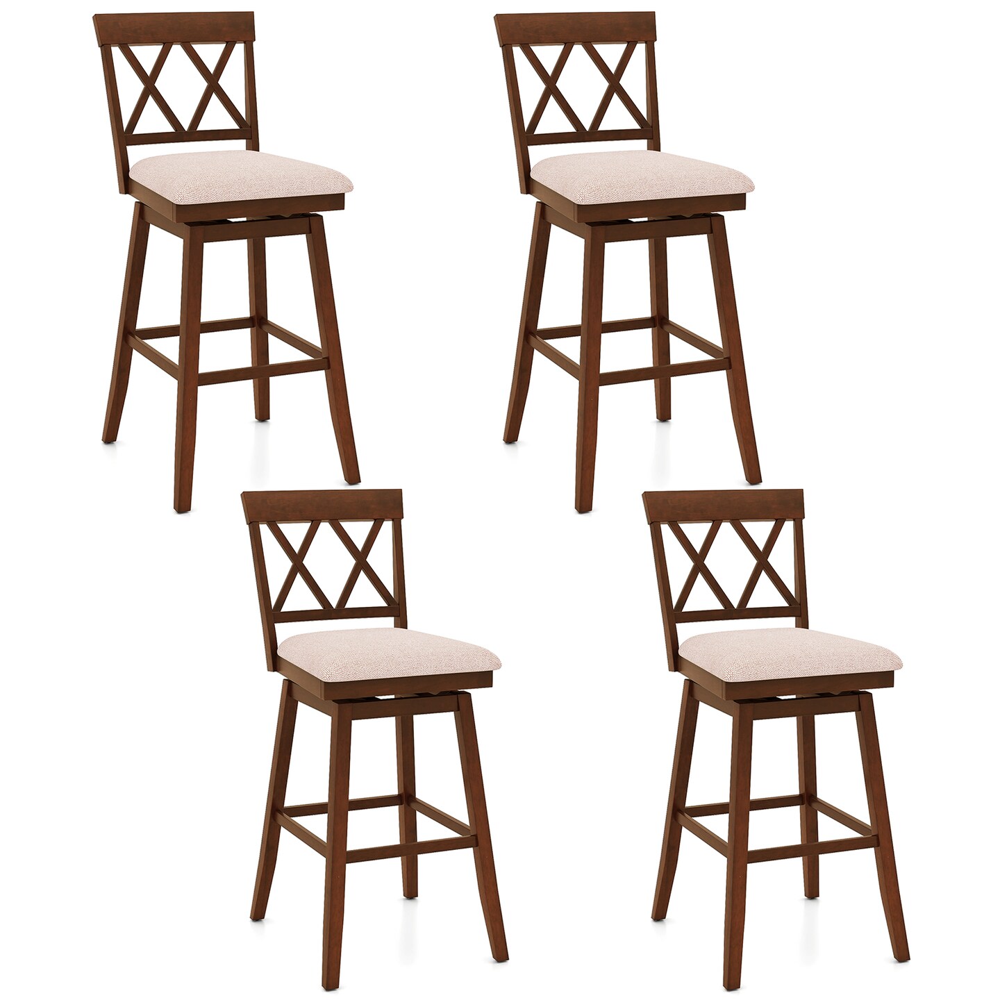 Costway 29" Bar Stool Wooden Chair Set of 1/2/3/4 with Contoured Backrest Swivel Padded Seat Oak