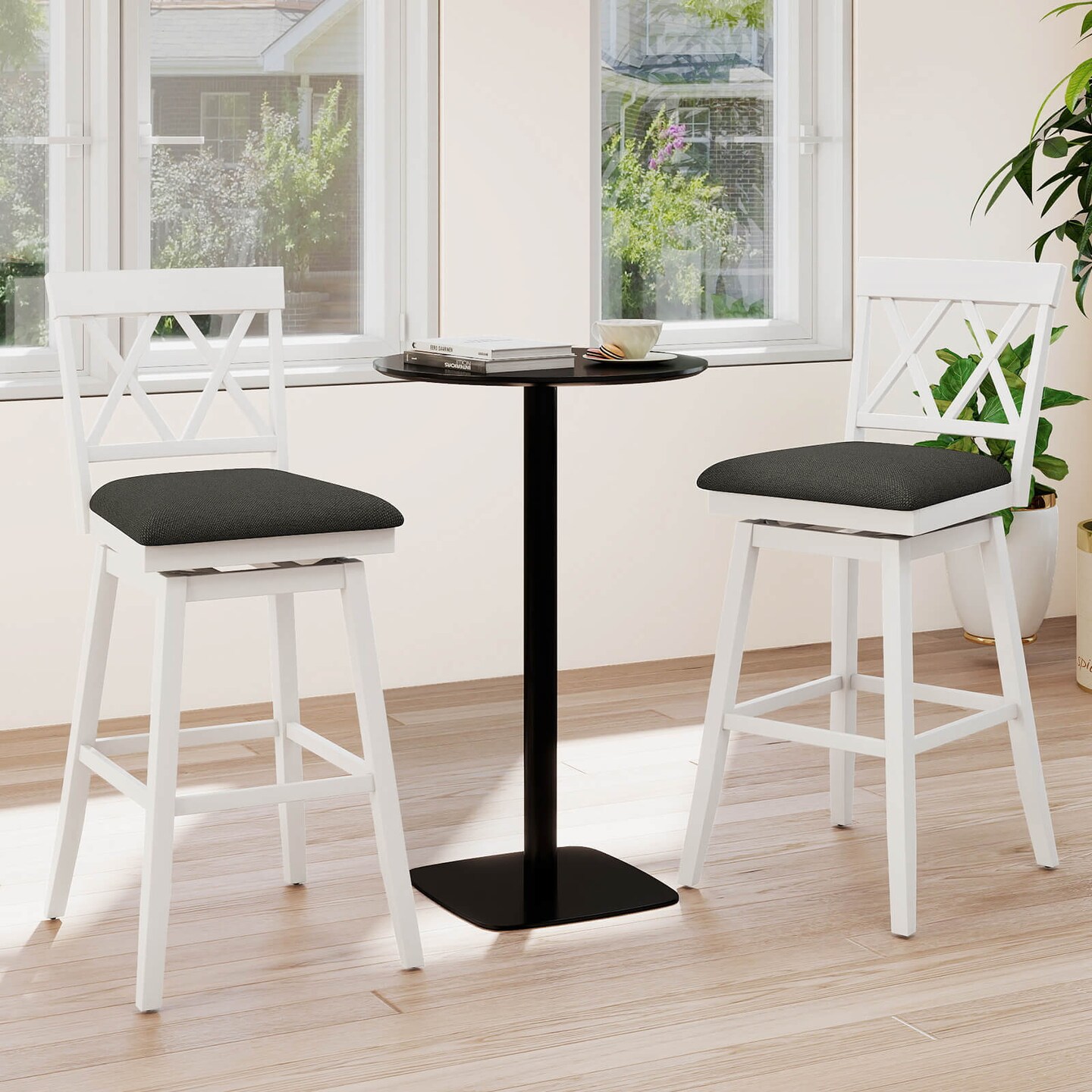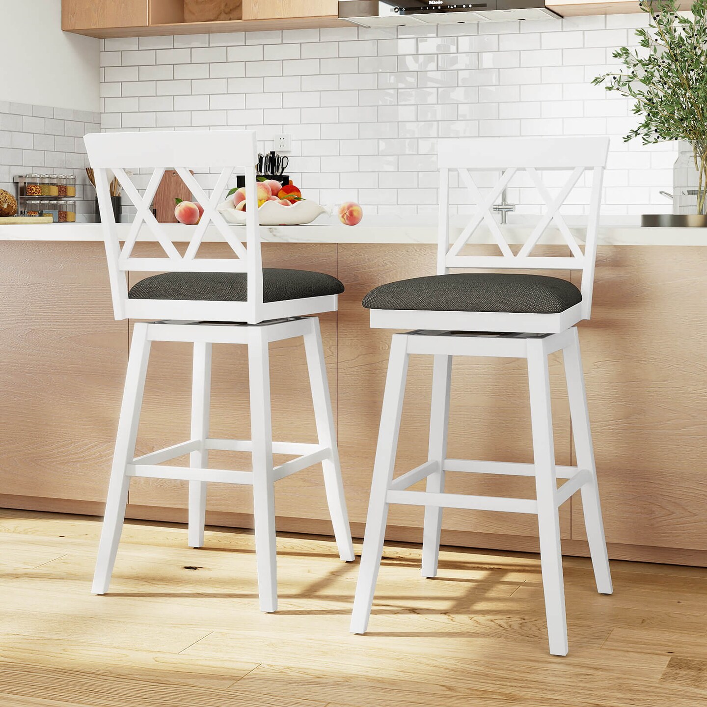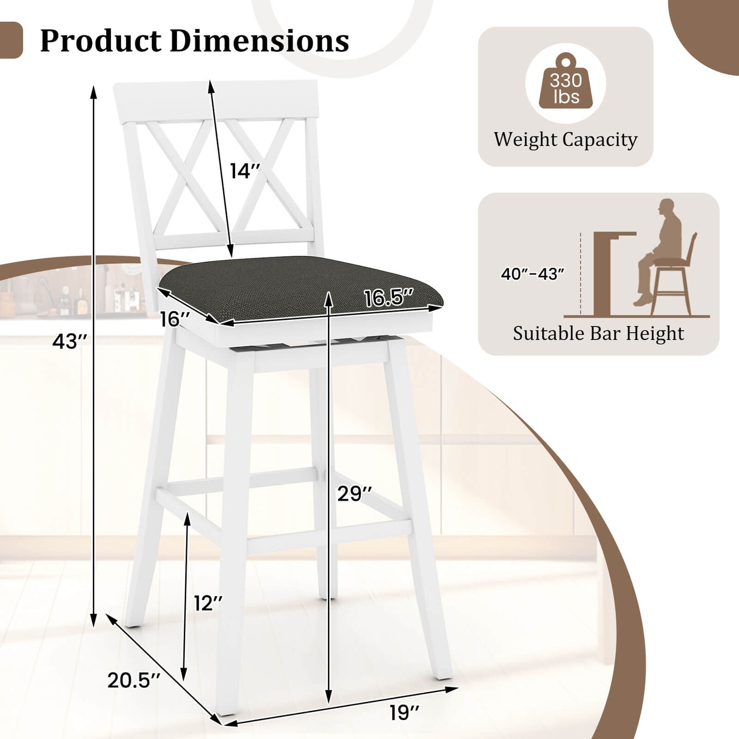 Costway 29" Bar Stool Wooden Chair Set of 1/2/3/4 with Contoured Backrest Swivel Padded Seat White