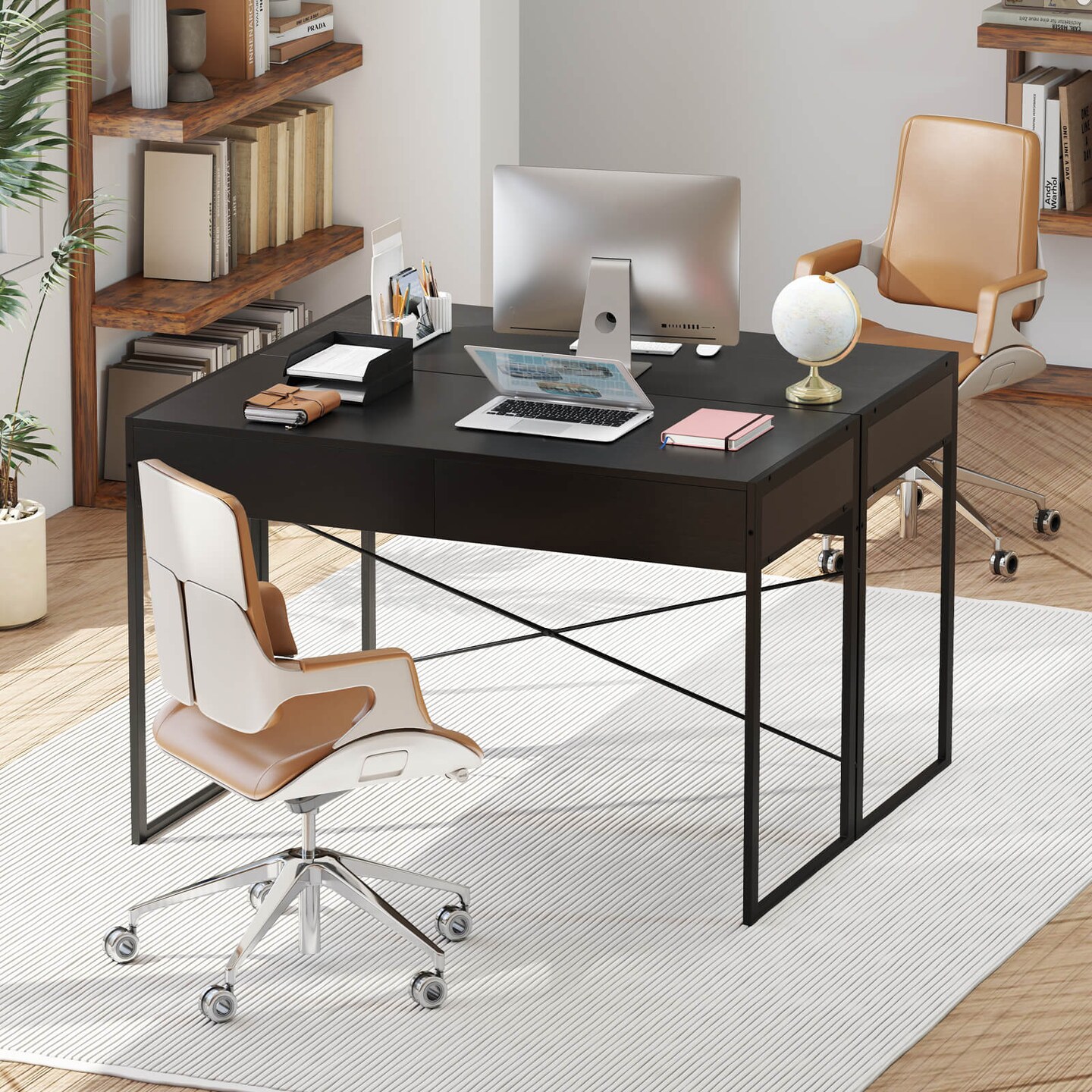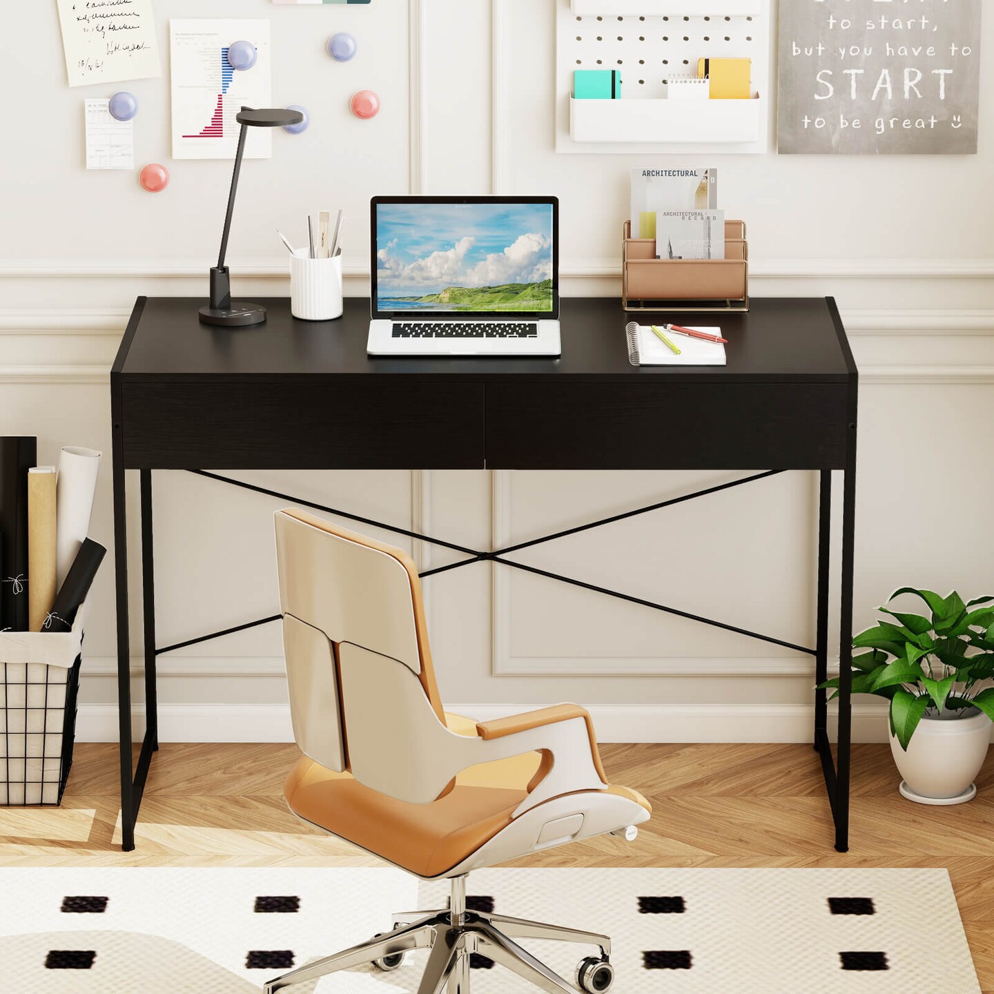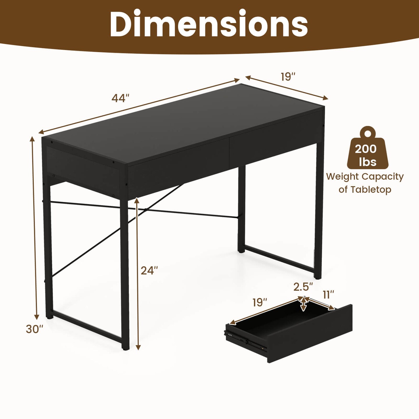 Costway 2-Drawer Computer Desk Study Table Writing Workstation Home Office Brown\Antique\Black