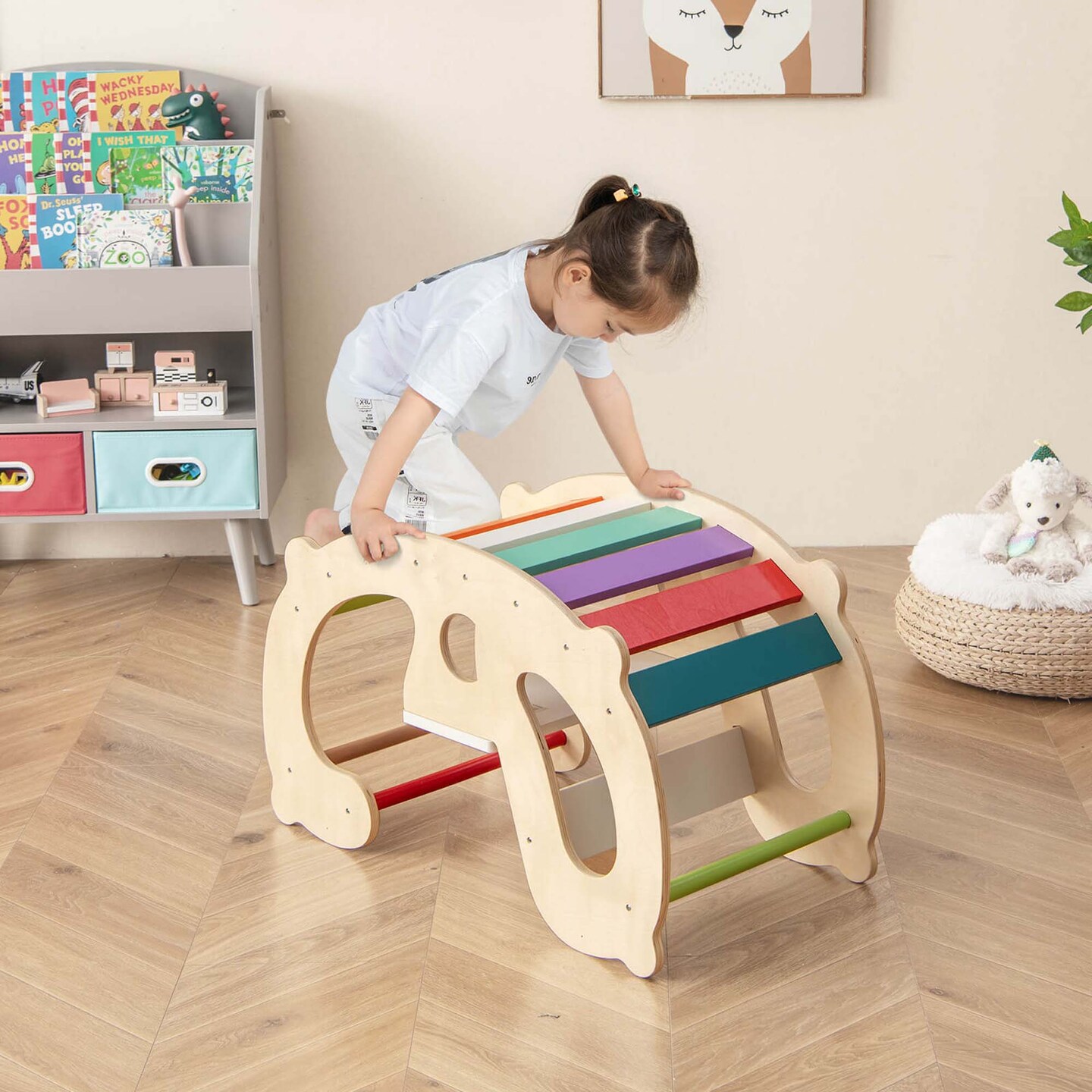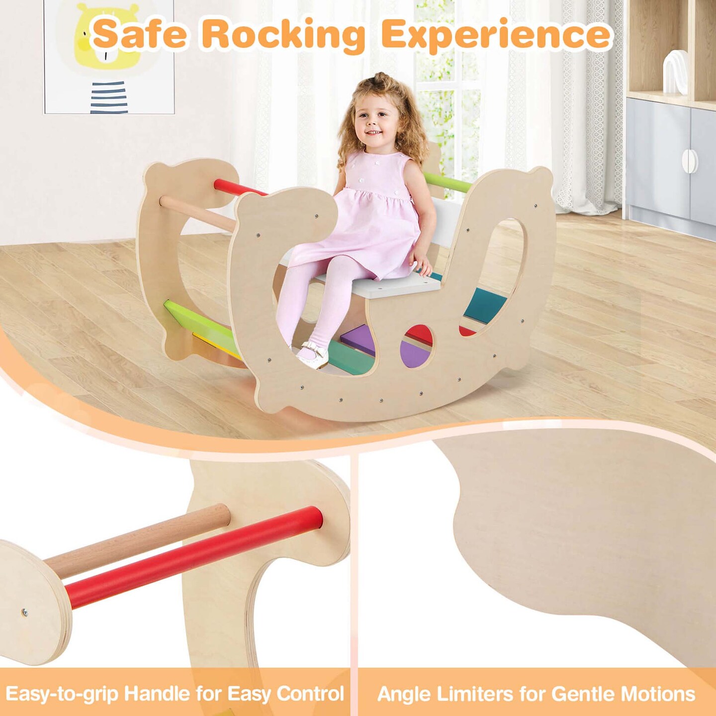 Costway 2-in-1 Rocking Horse Arch for Kids with Rocker Arch Climber Comfortable Backrest Natural/Multi-color