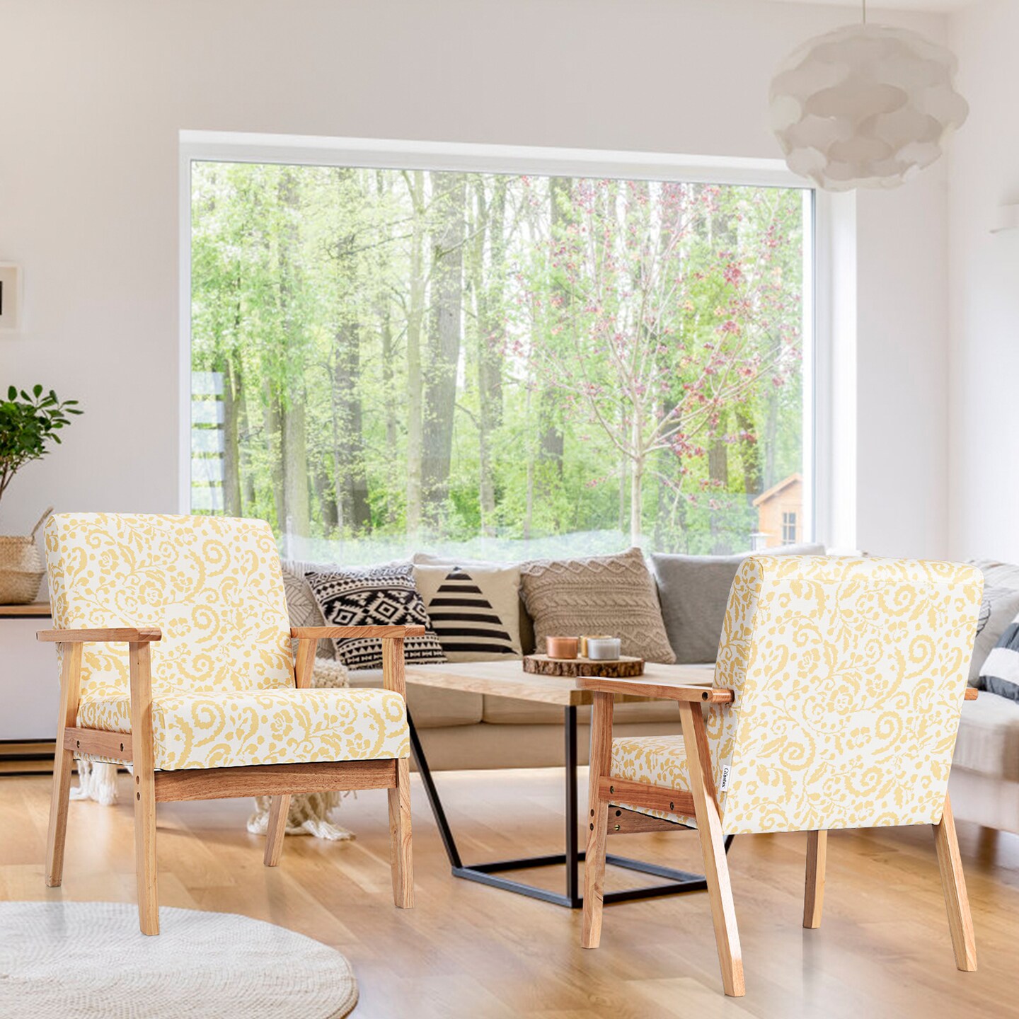 Costway 2PCS Accent Armchair Upholstered Chair Home Office w/ Wooden Frame White/Blue/Yellow