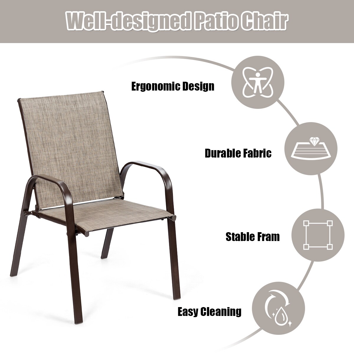 Costway 2PCS Patio Chairs Deck Yard W/Armrest Brown/Beige/Gray