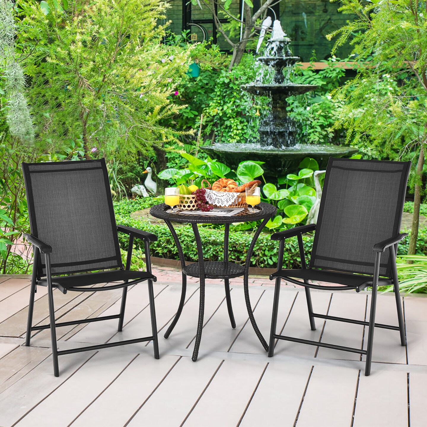 Costway 2PCS Patio Folding Dining Chairs Portable Camping Armrest Garden Black/Grey