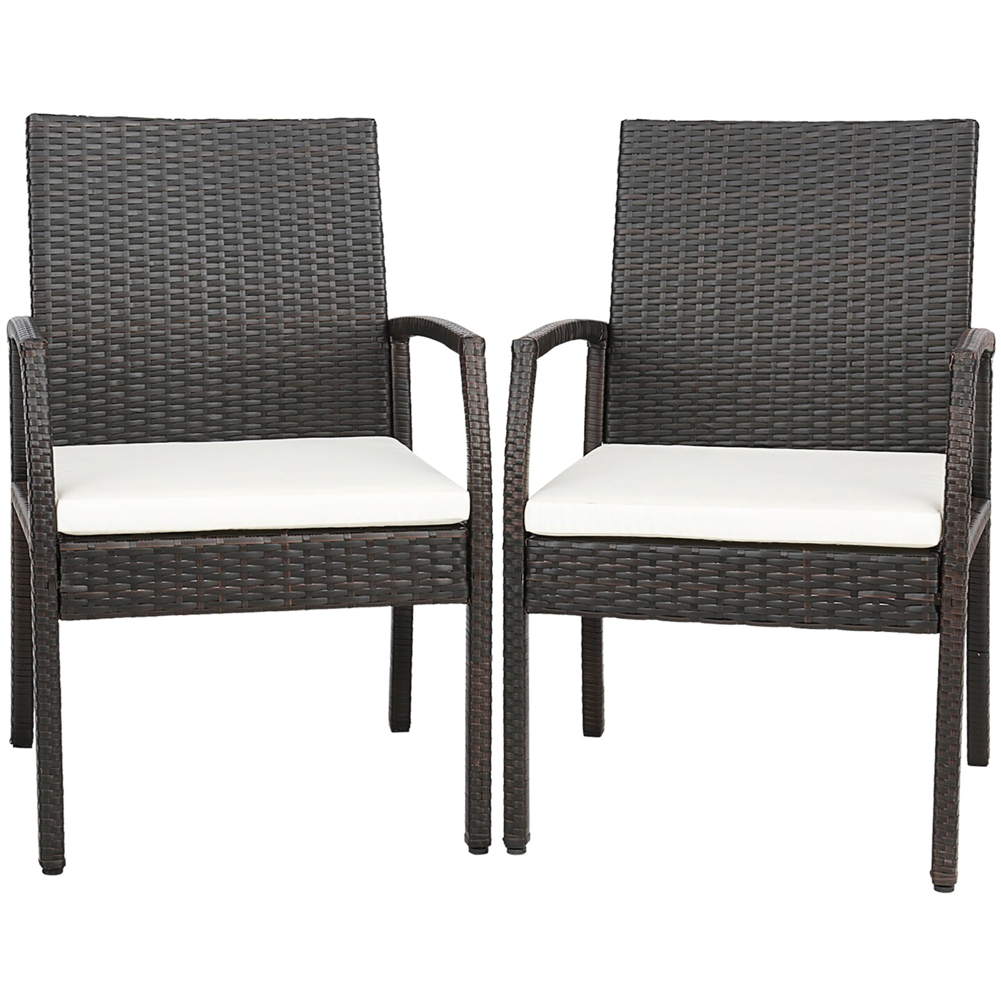 Costway 2PCS Patio PE Wicker Dining Chairs with Soft Zippered Cushion Armchairs Backyard
