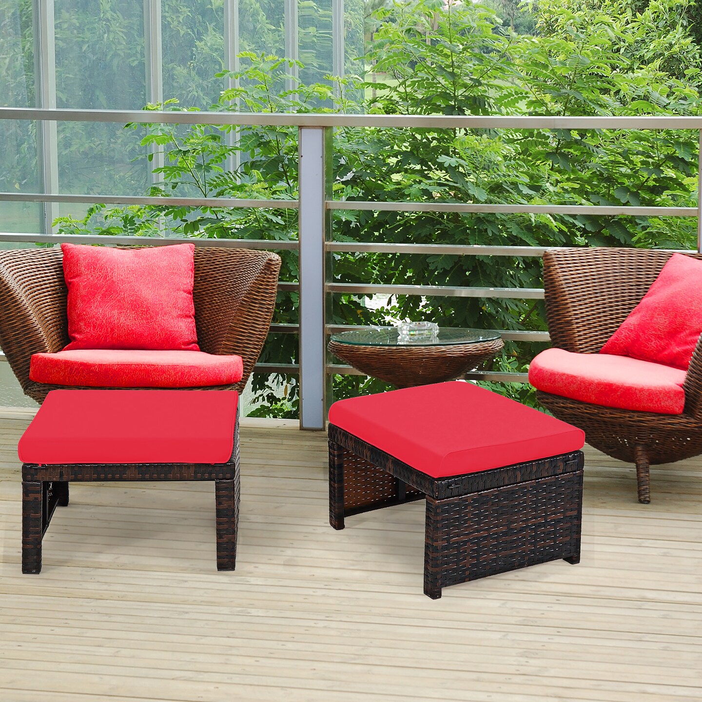 Costway 2PCS Patio Rattan Ottoman Cushioned Seat Foot Rest Furniture Turquoise\Red\White