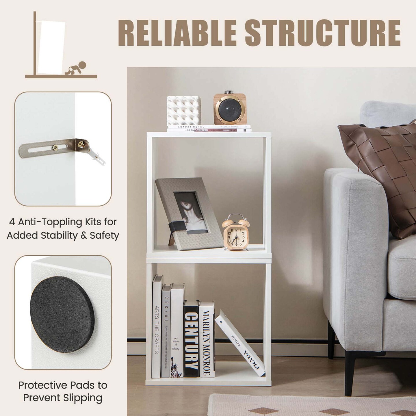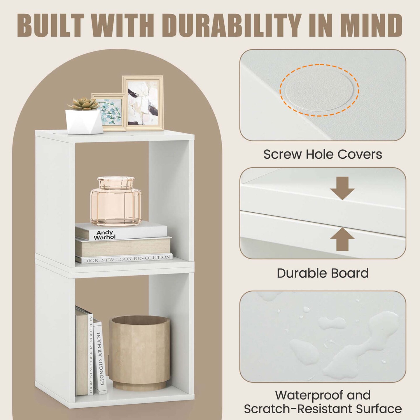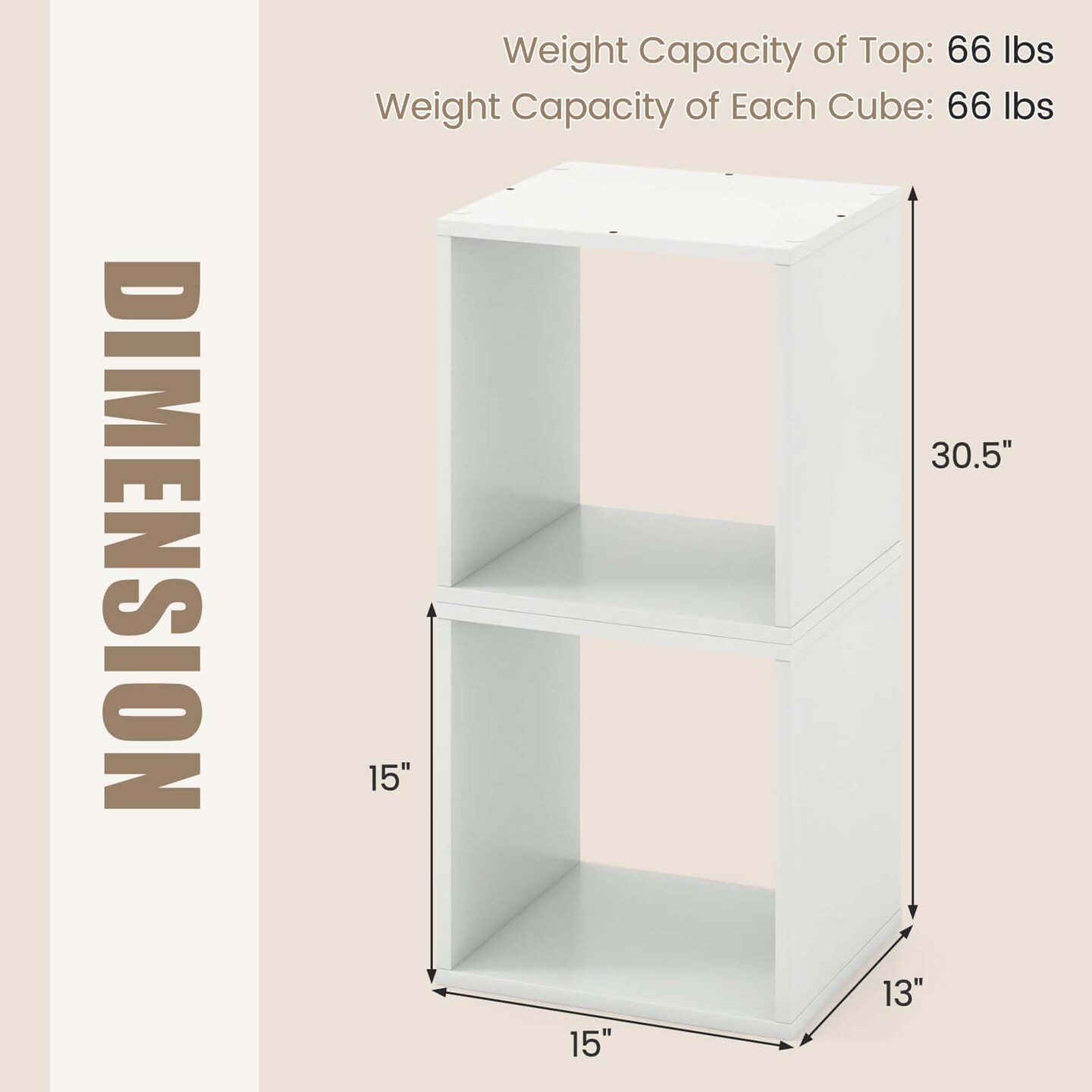 Costway 2PCS Stackable Storage Cube Free-standing Storage Organizer Bookcase for Bedroom White/Natural