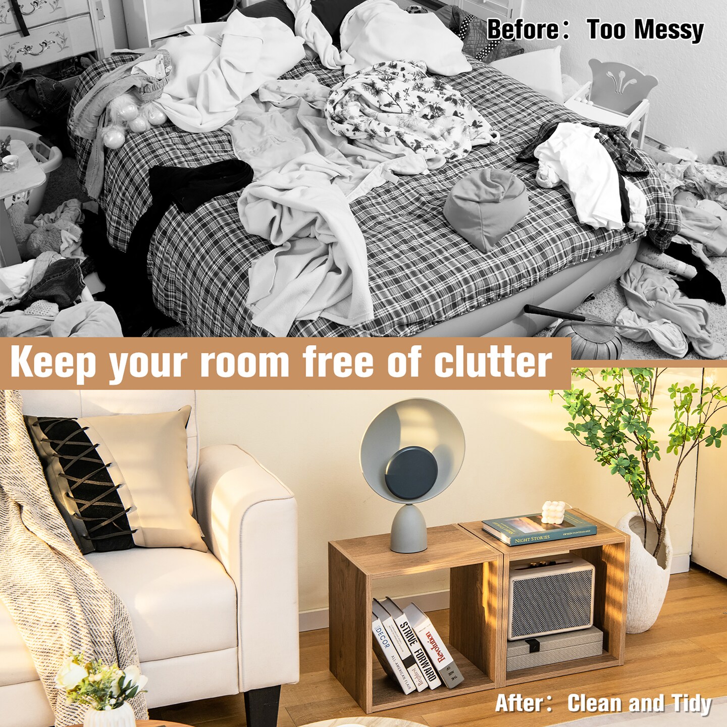 Costway 2PCS Stackable Storage Cube Free-standing Storage Organizer Bookcase for Bedroom White/Natural