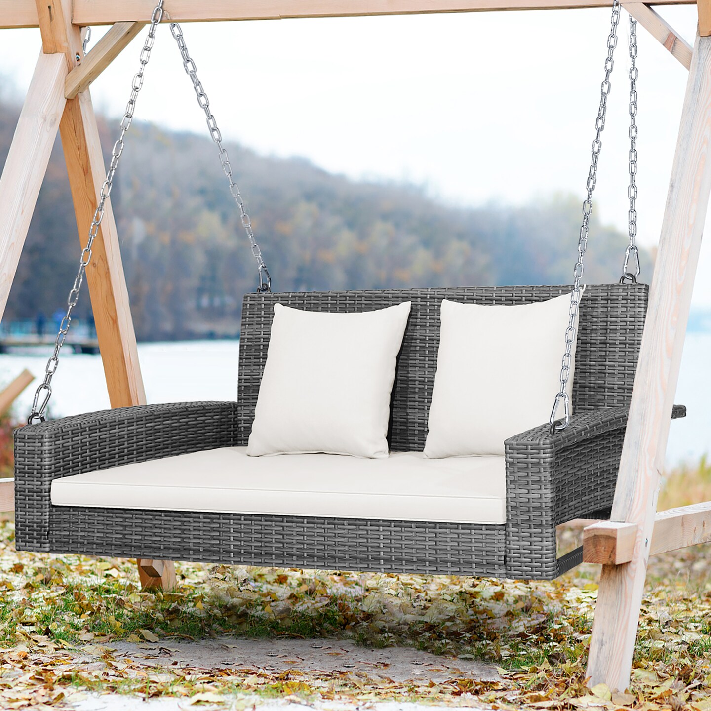 Costway 2-Person Patio PE Wicker Hanging Porch Swing Bench Chair with Cushion