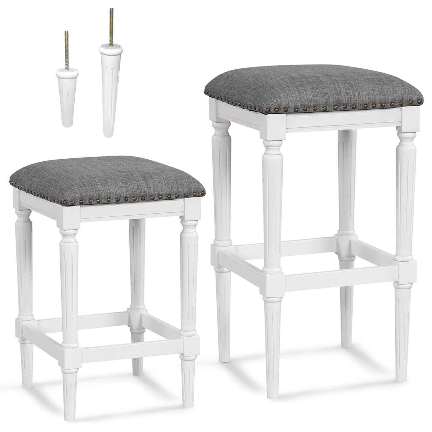 Costway 3 Heights Saddle Stool Set of 2 Square Kitchen Island Stool with Footrests