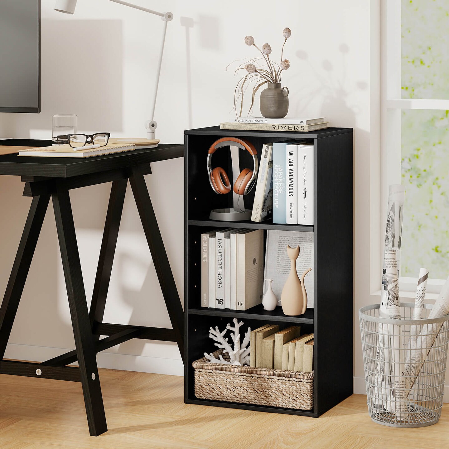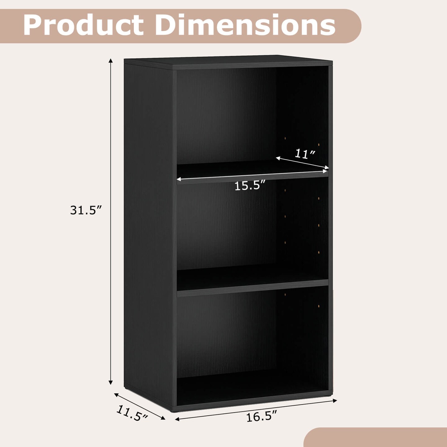 Costway 3 Open Shelf Bookcase Modern Multi-functional Storage Display Cabinet BlackWalnut