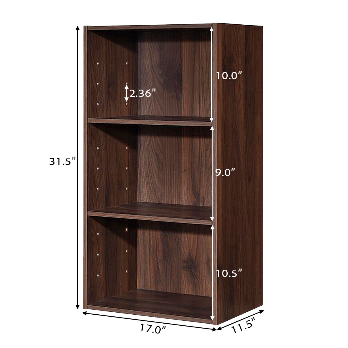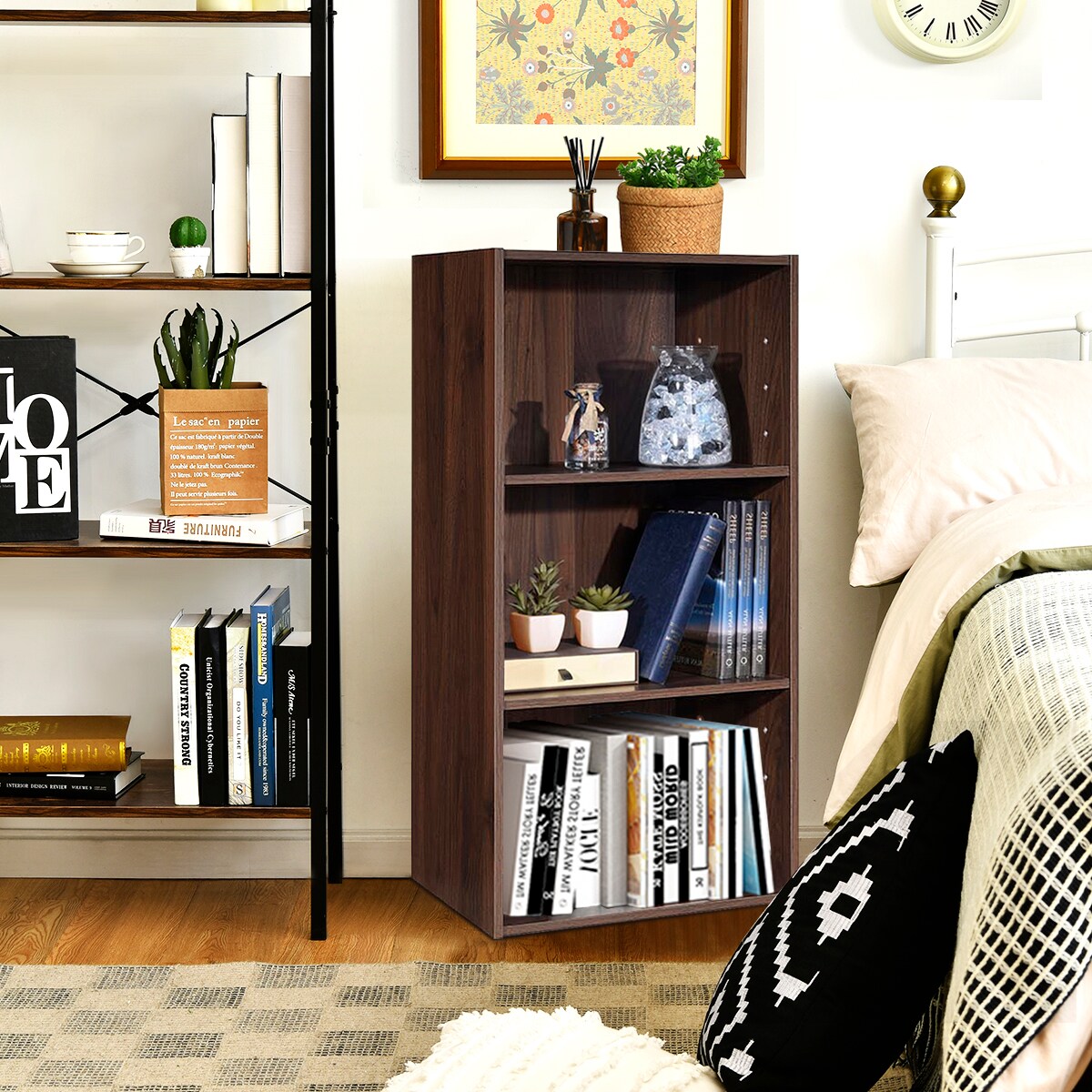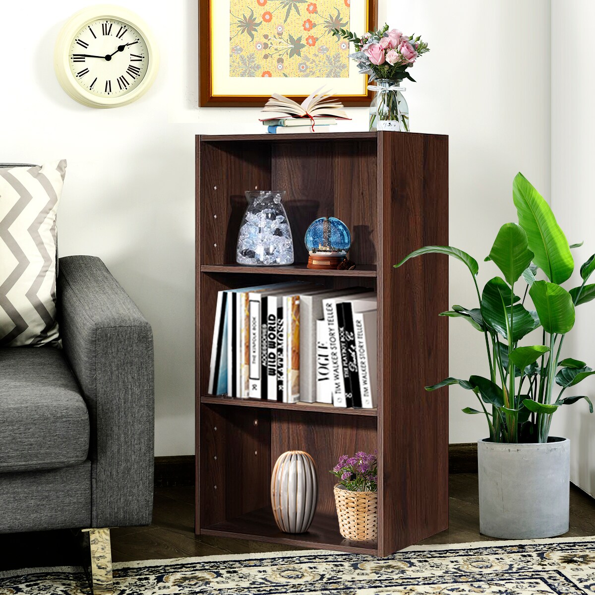 Costway 3 Open Shelf Bookcase Modern Multi-functional Storage Display Cabinet Walnut