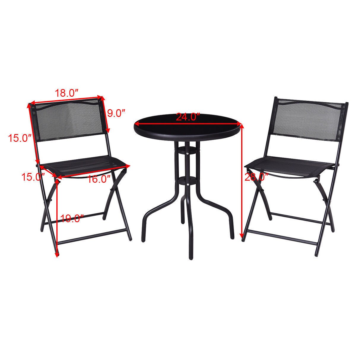 Costway 3 Pcs Bistro Set Garden Backyard Table Folding Chairs Outdoor Patio Furniture