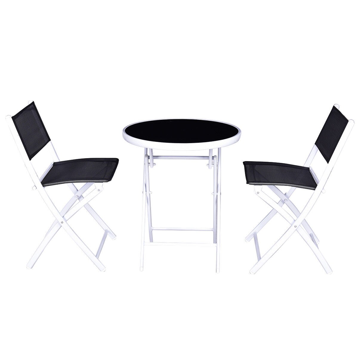 Costway 3 PCS Folding Bistro Table Chairs Set Garden Backyard Patio Furniture Black