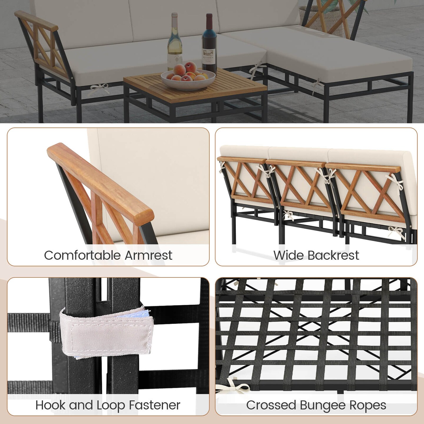 Costway 3 PCS L-Shaped Patio Furniture Set with Loveseat Square Coffee Table Soft Back