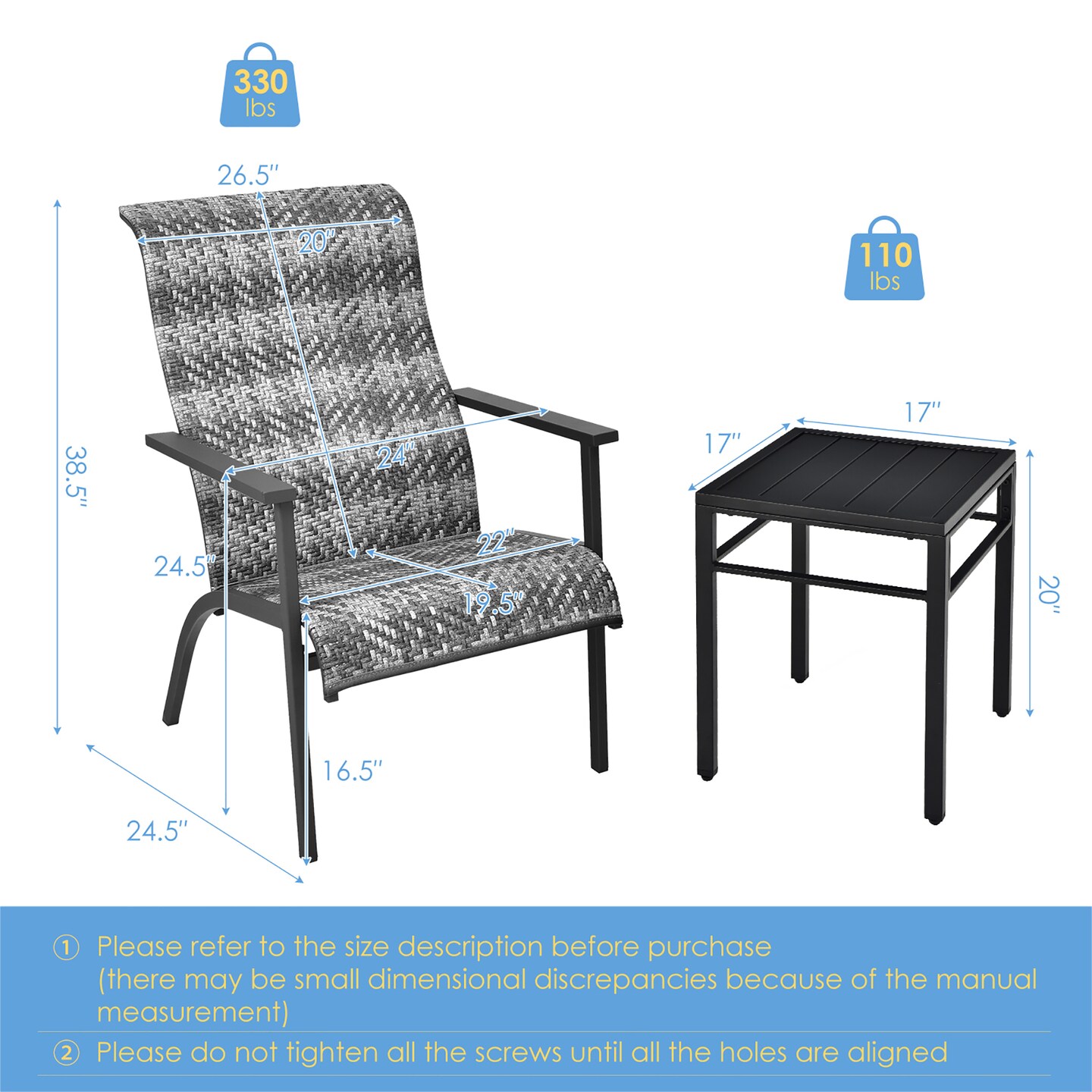 Costway 3 PCS Patio Rattan Bistro Set High Backrest Armrest SideTable Mix Gray\Mix Brown