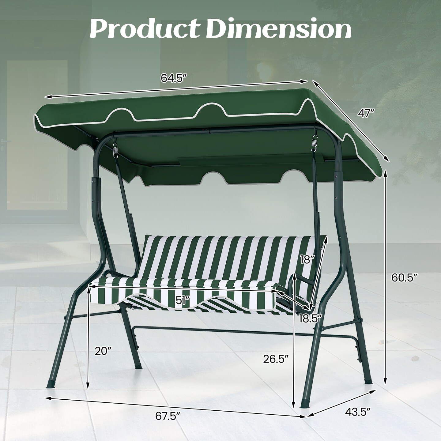 Costway 3 Seats Patio Canopy Steel Frame Swing Glider Hammock Cushioned Backyard Green