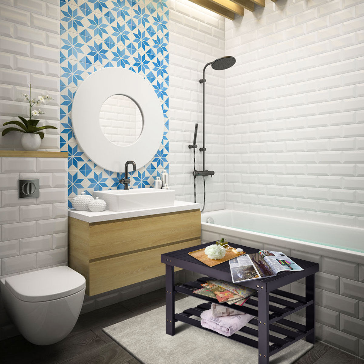 Costway 3 Tier Bamboo Shoe Rack Bench Storage Shelf Organizer Entryway Home Furni Black