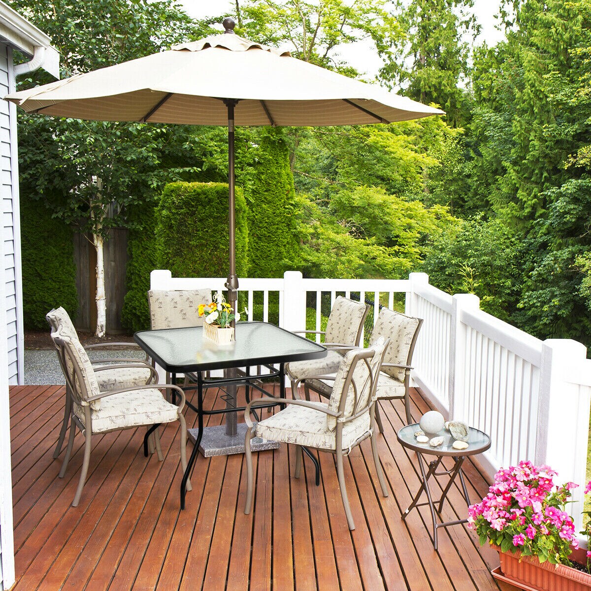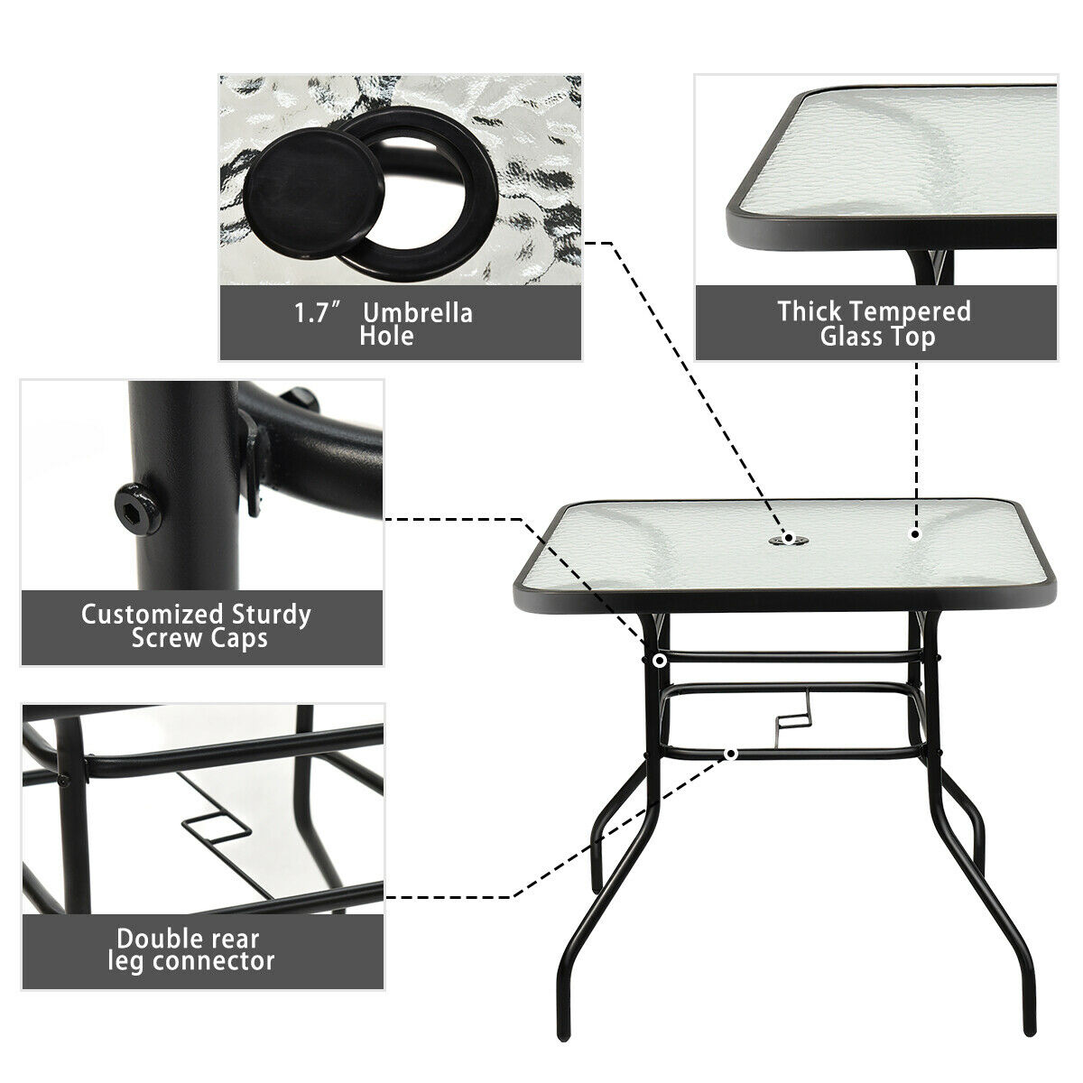 Costway 32'' Patio Square Table Tempered Glass Steel Frame Outdoor Pool Yard Garden