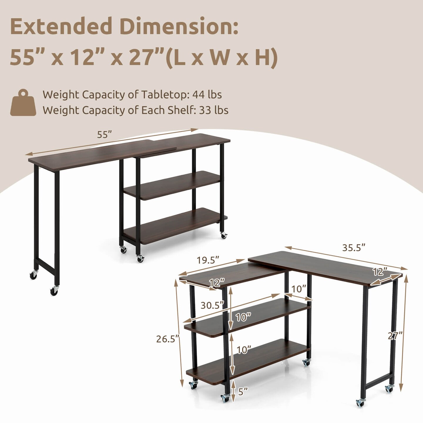 Costway 360° Rotatable Sofa Side Table L-shaped Laptop Desk Snack Table withShelf Patented Brown/Natural/Walnut/Rustic Brown