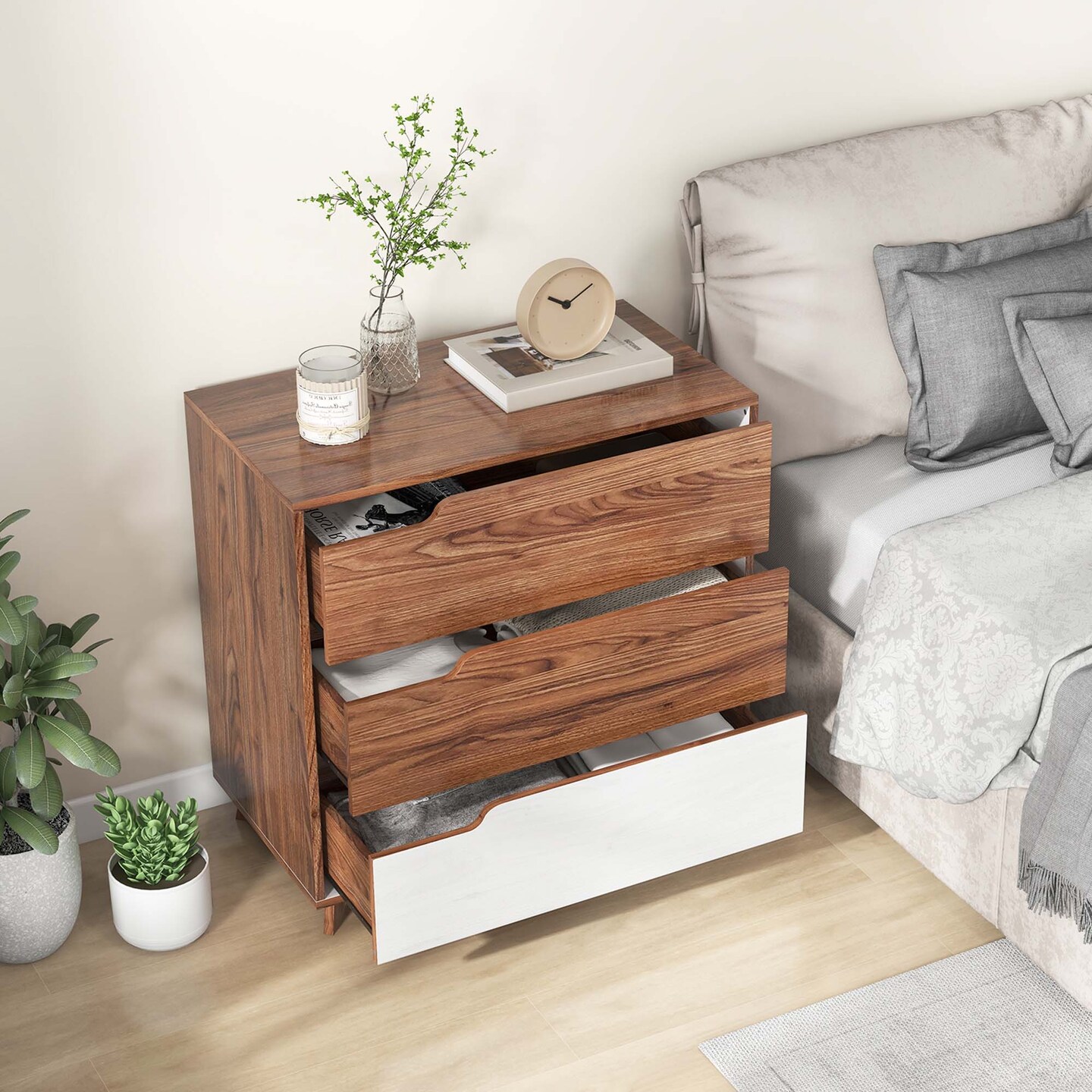 Costway 3-Drawer Dresser Farmhouse Wooden Sofa Beside Table Storage Organizer Rustic