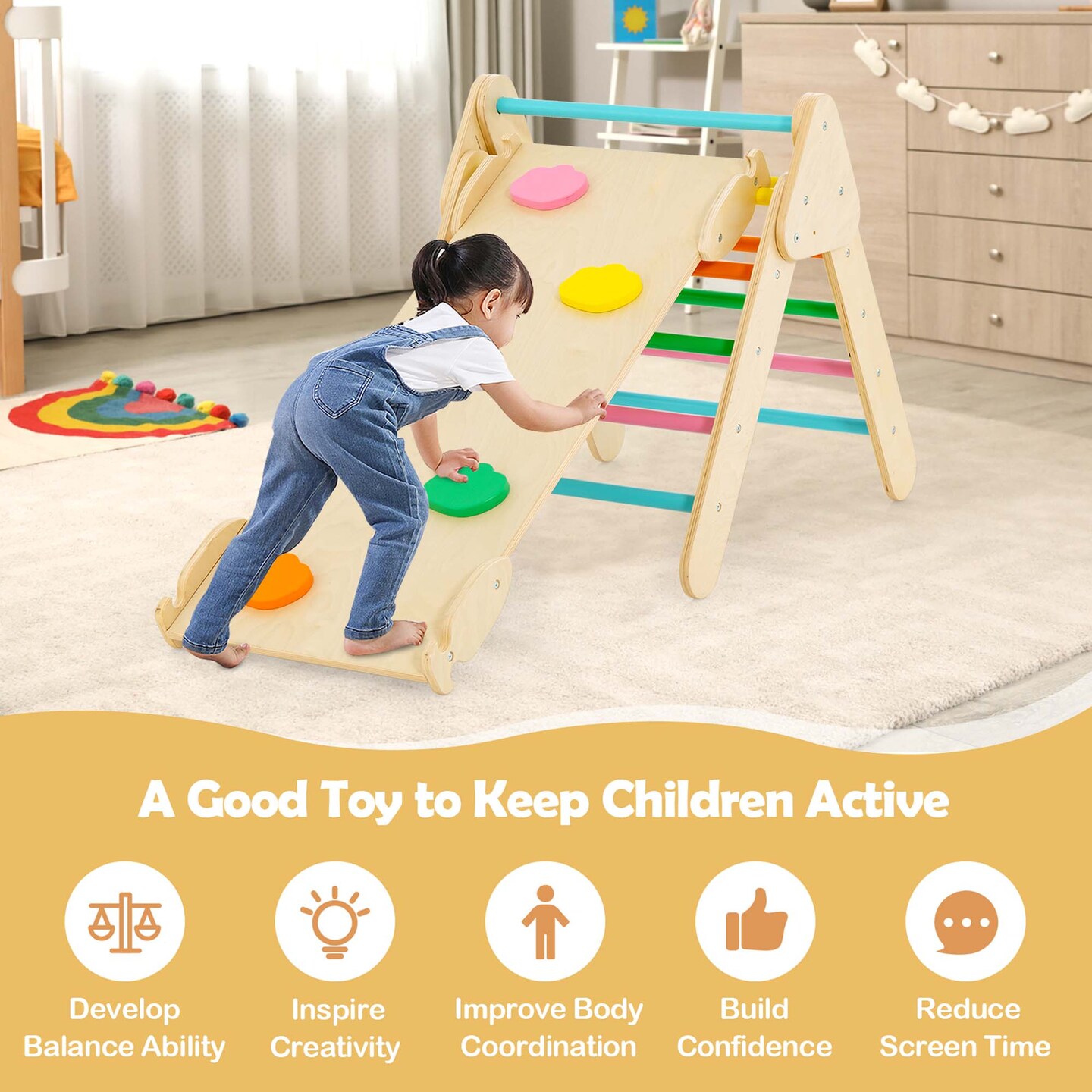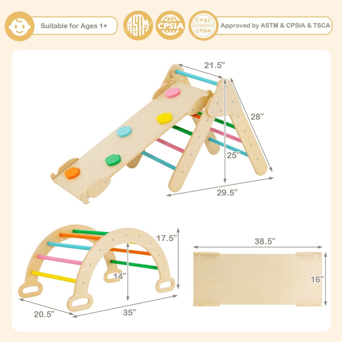 Costway 3-in-1 Kids Climber Set Toddler Wooden Play Arch with Sliding and Climbing Ramp