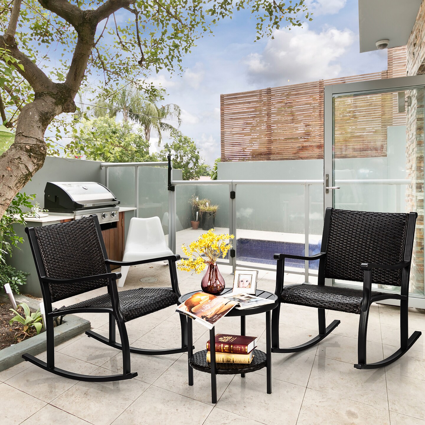 Costway 3PCS Patio Rattan Rocking Chair Bistro Set Coffee Table Storage Shelf