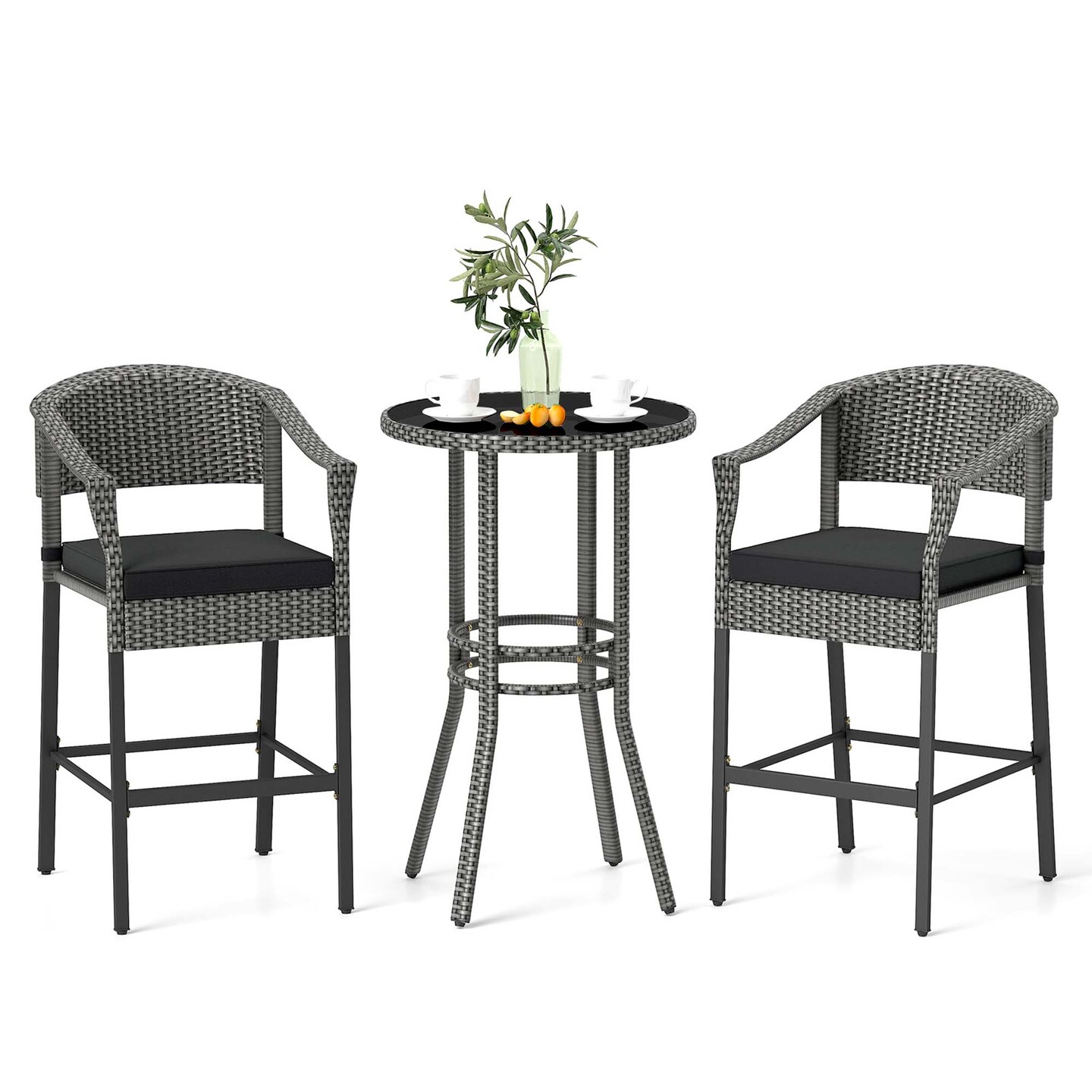 Costway 3-Piece Patio Rattan Bar Set Wicker Bar Height Armchairs & Round Table