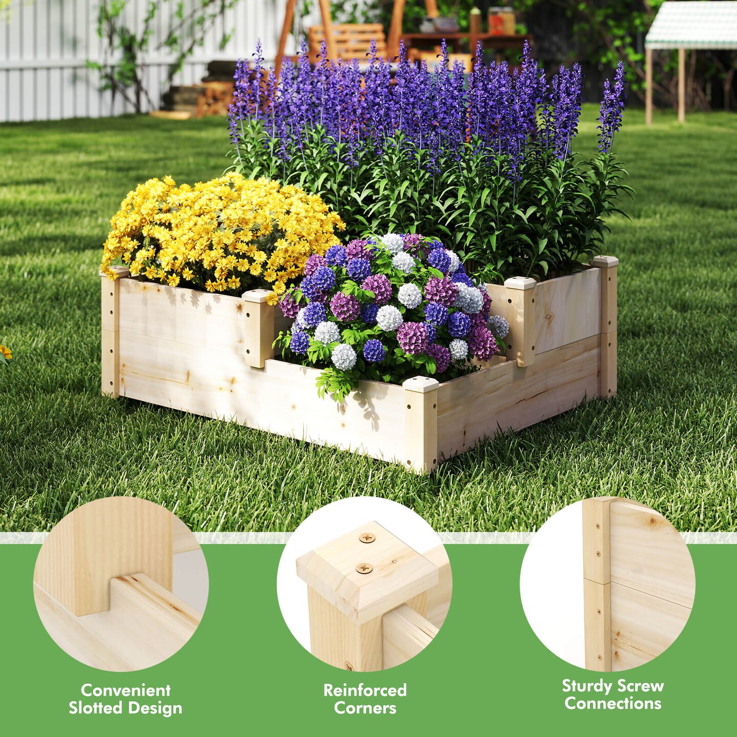 Costway 3-Tier Outdoor Raised Garden Bed Vegetable Planter Box for Patio Lawn Backyard
