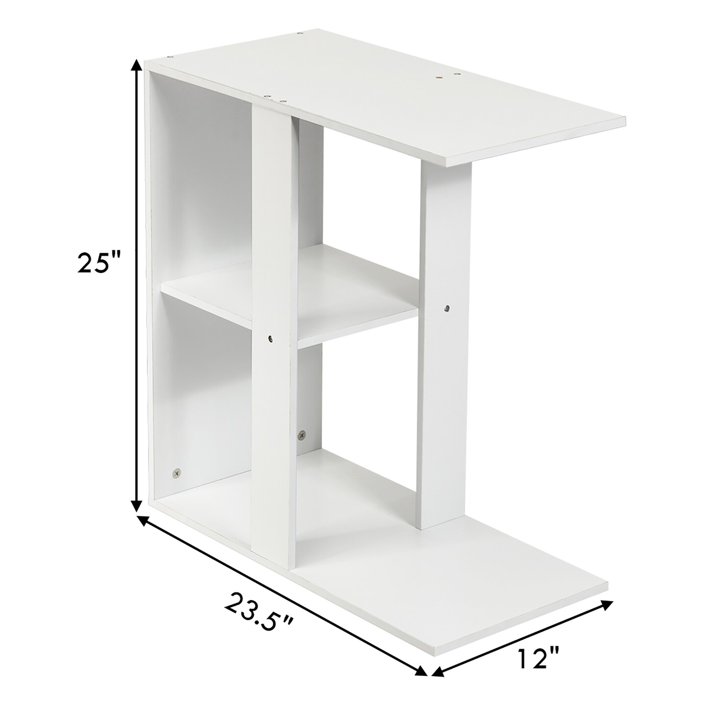 Costway 3-tier Side Table W/Storage Shelf Space-saving Nightstand White