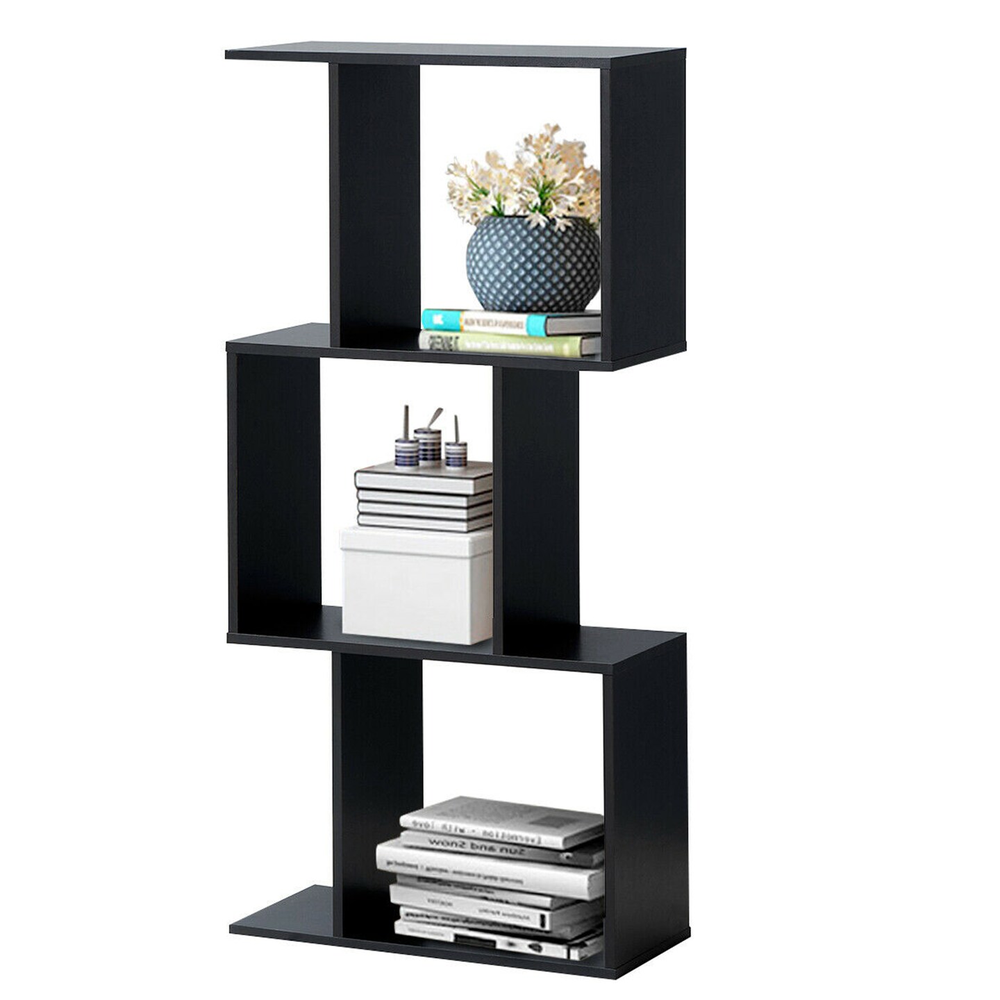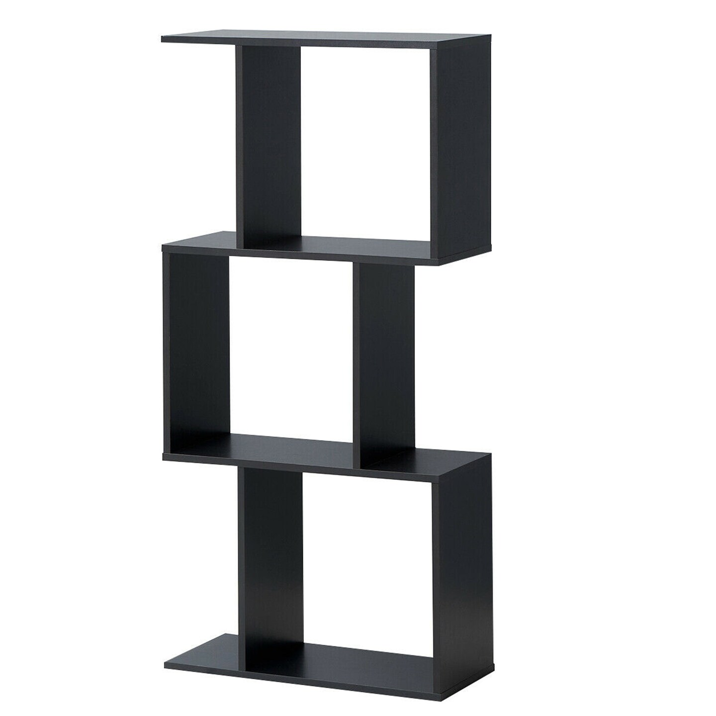 Costway 3-tier S-Shaped Bookcase Free Standing Storage Rack Wooden Display Decor Black