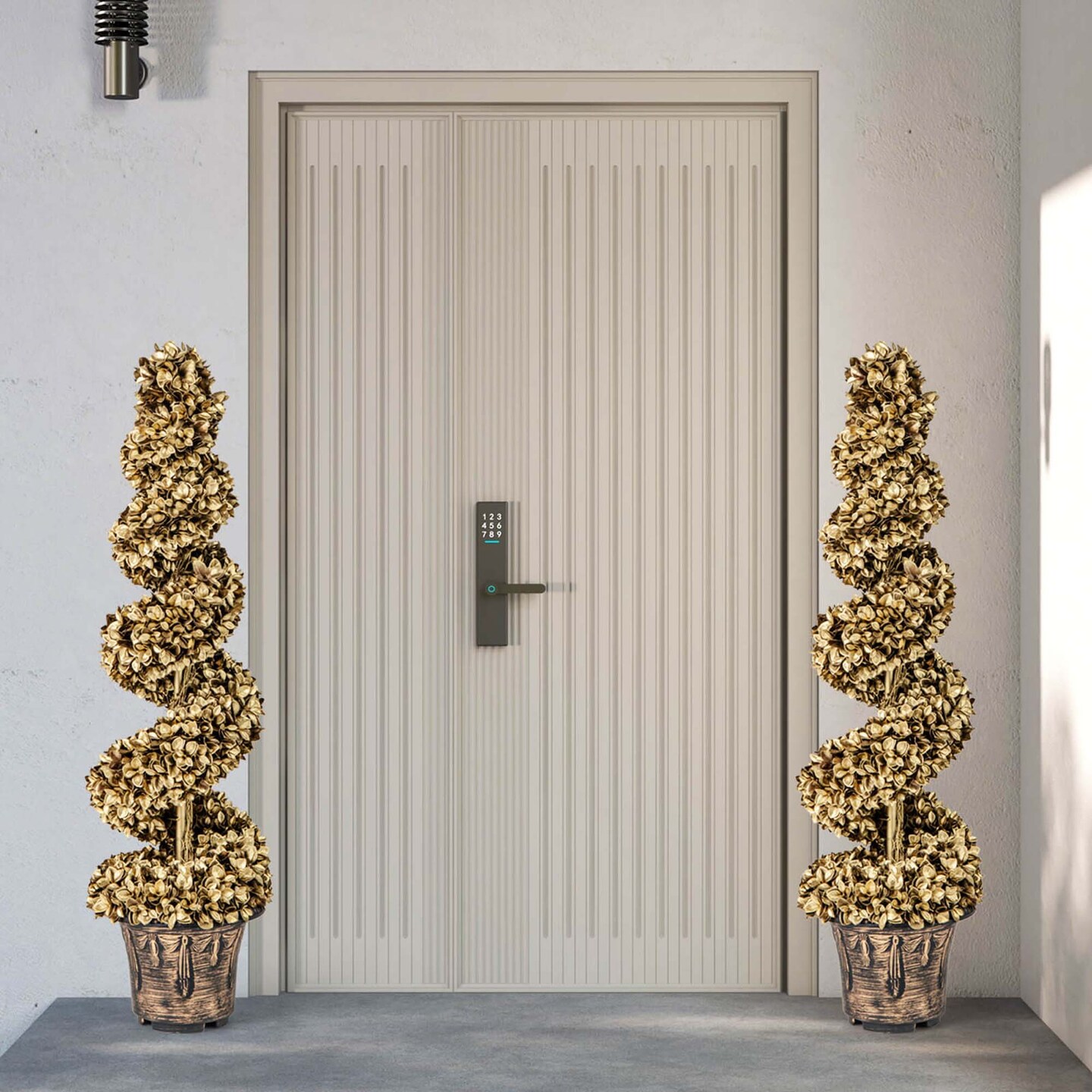 Costway 4 FT Artificial Topiary Spiral Tree Set of 2 with Vintage Plastic Nursery Pot