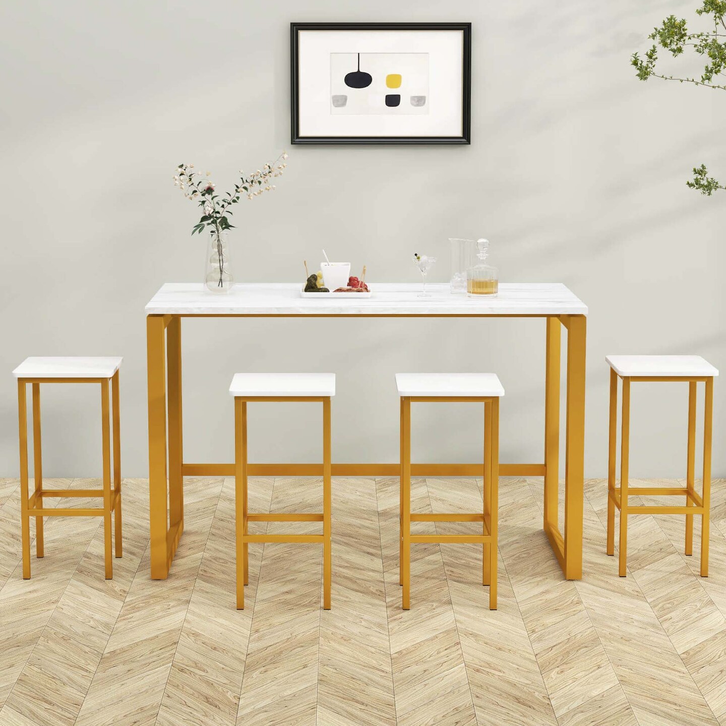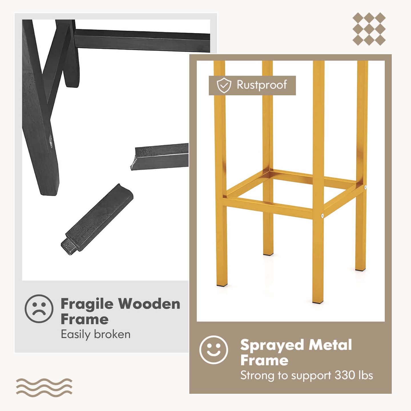 Costway 4 PCS 26"Bar Stool Set with Metal Frame Footrest Backless Counter Height Stool Brown