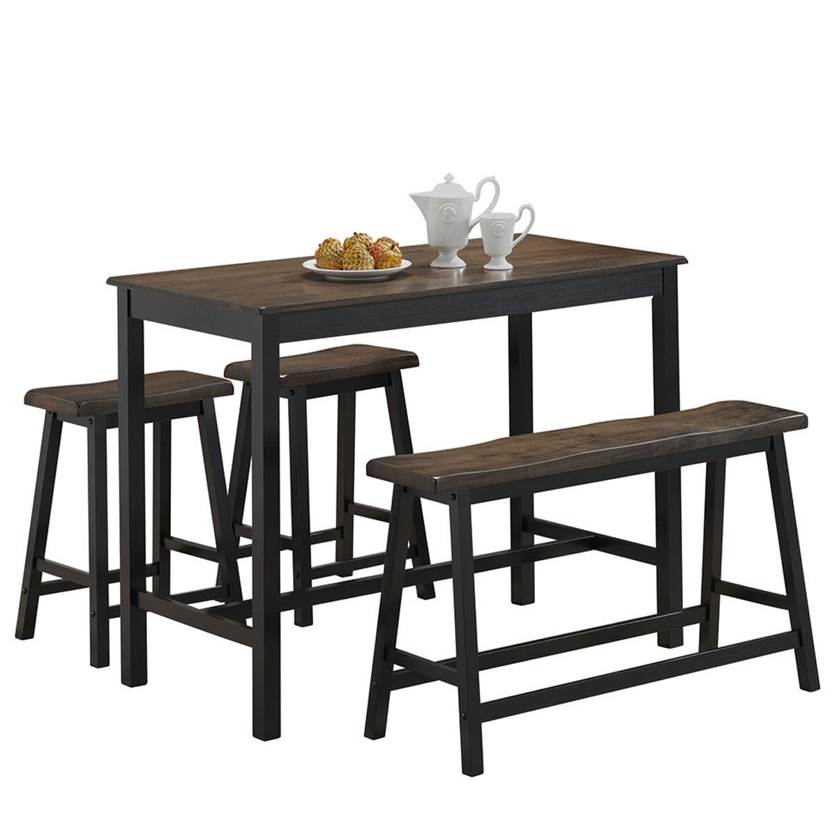 Costway 4 Pcs Solid Wood Counter Height Table Set w/ Height Bench & Two Saddle Stools