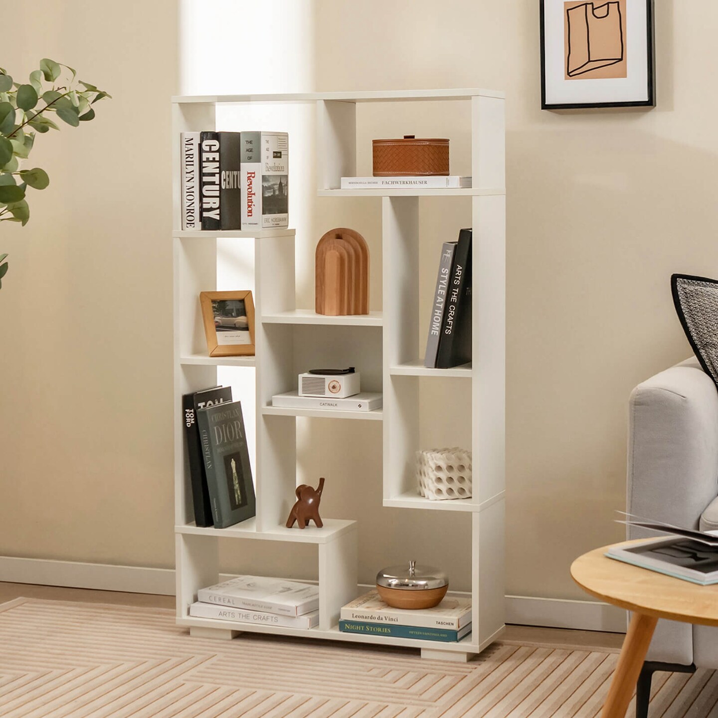 Costway 47" Tall Bookshelf Modern Geometric Bookcase with Open Shelves Anti-tipping Kits White/Black&Natural