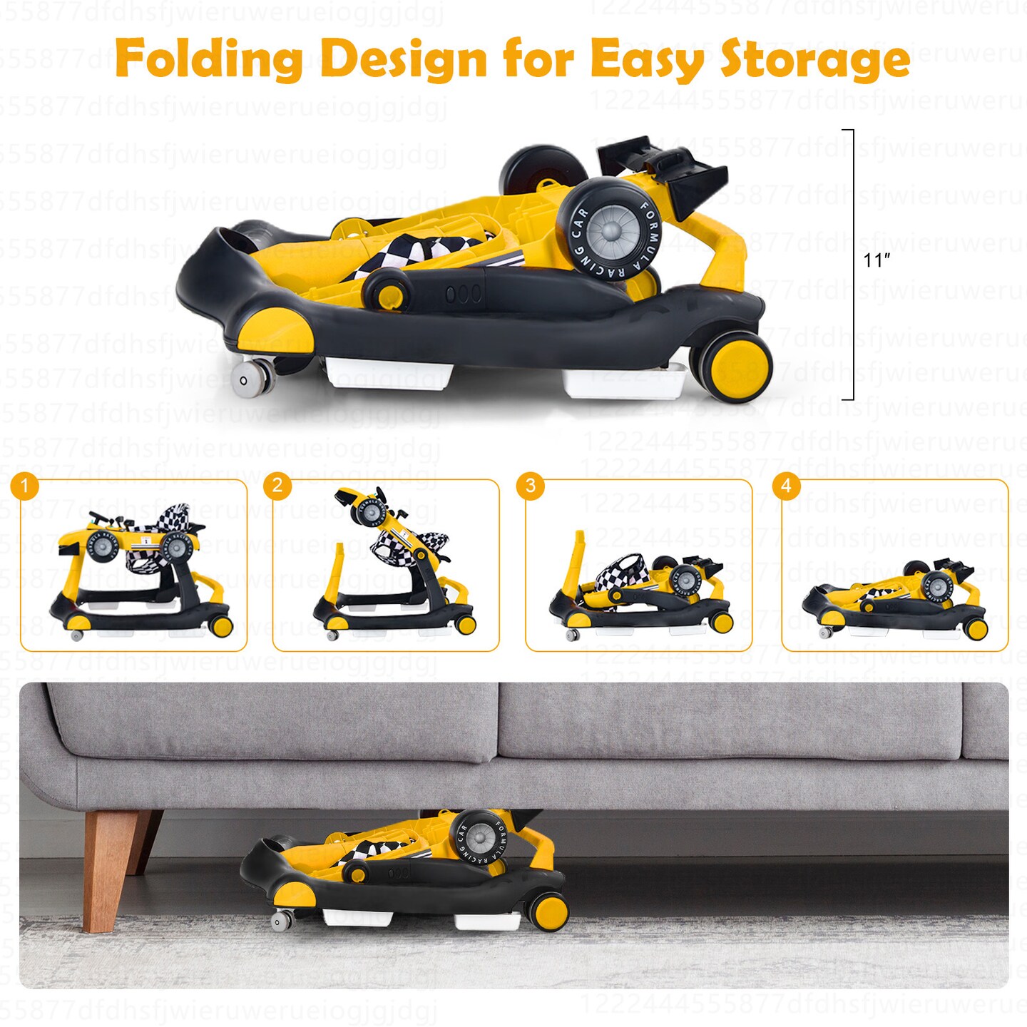 Costway 4-in-1 Baby Walker Foldable Activity Push Walker Adjustable Yellow/Blue/Red/Black/White/Deep Pink/Purple