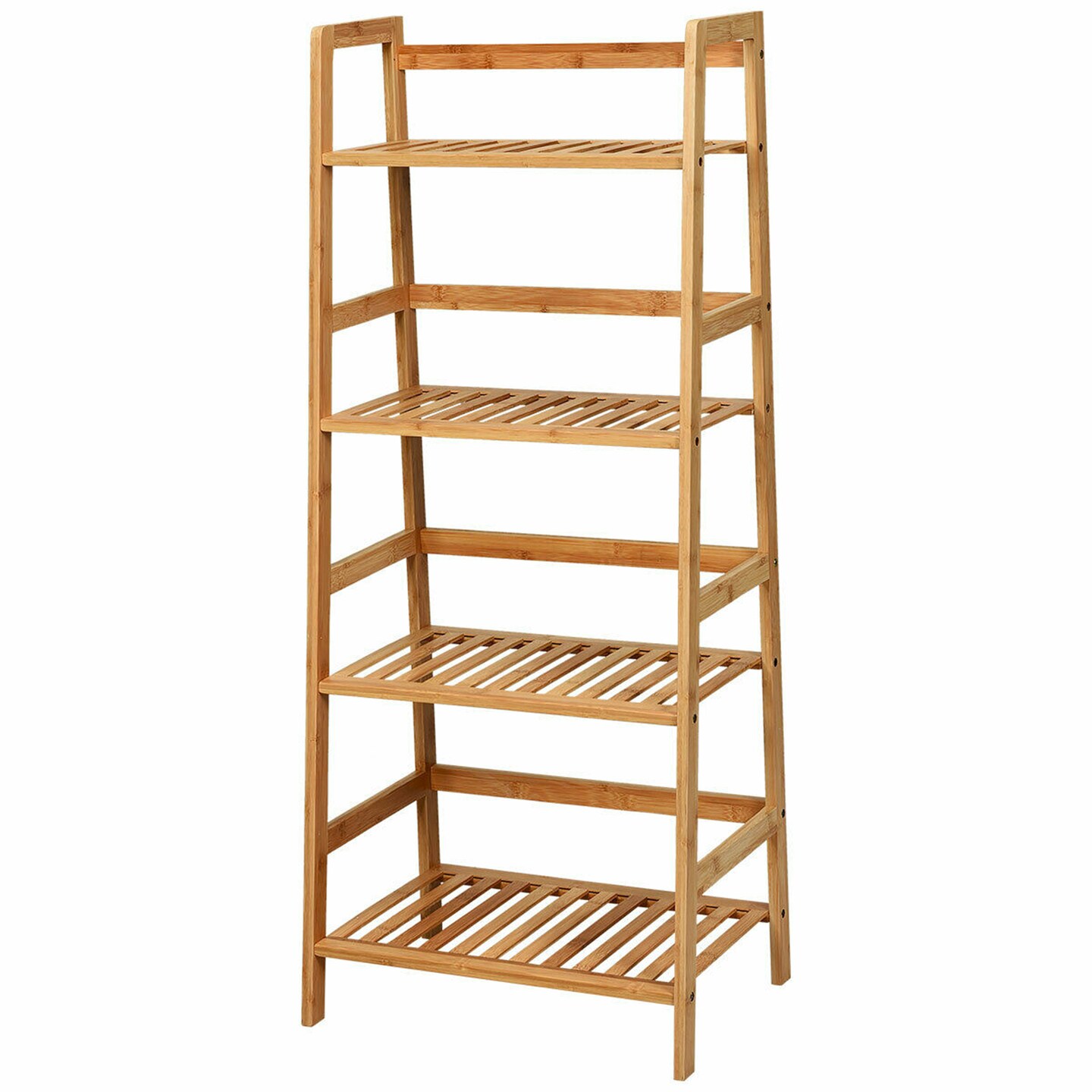Costway 4-Tier Bamboo Ladder Shelf Multipurpose Plant Display Stand Storage Bookshelf